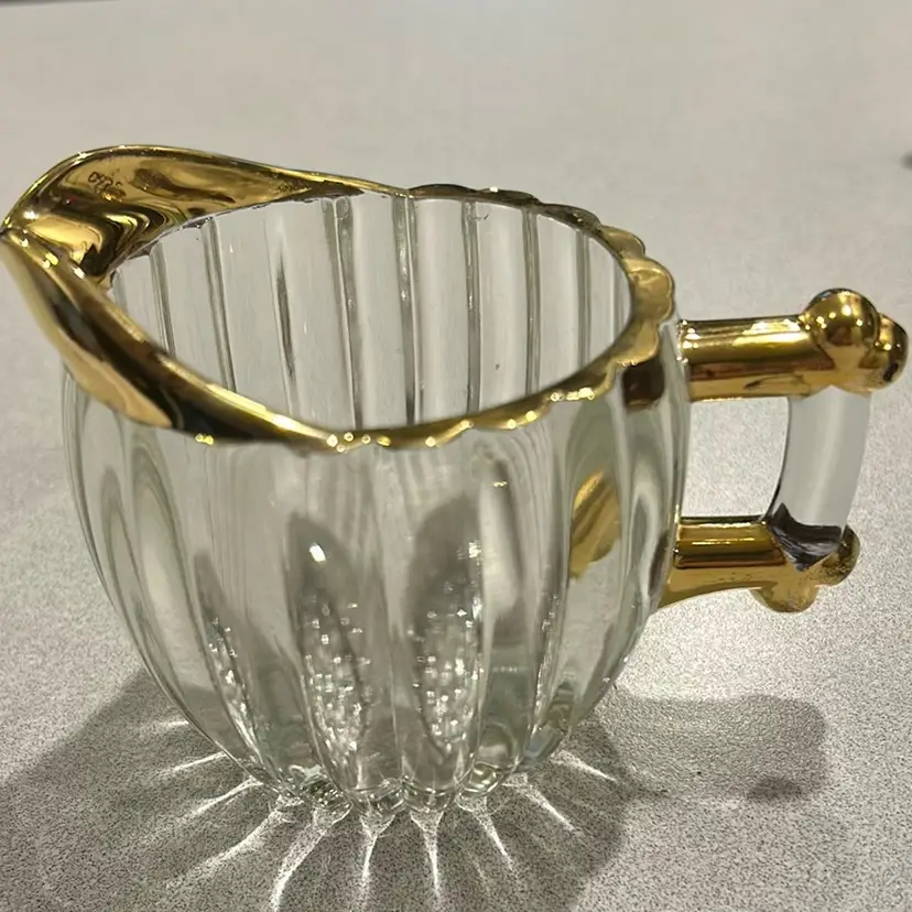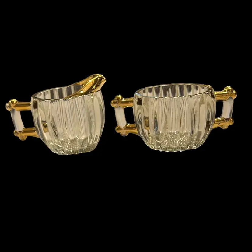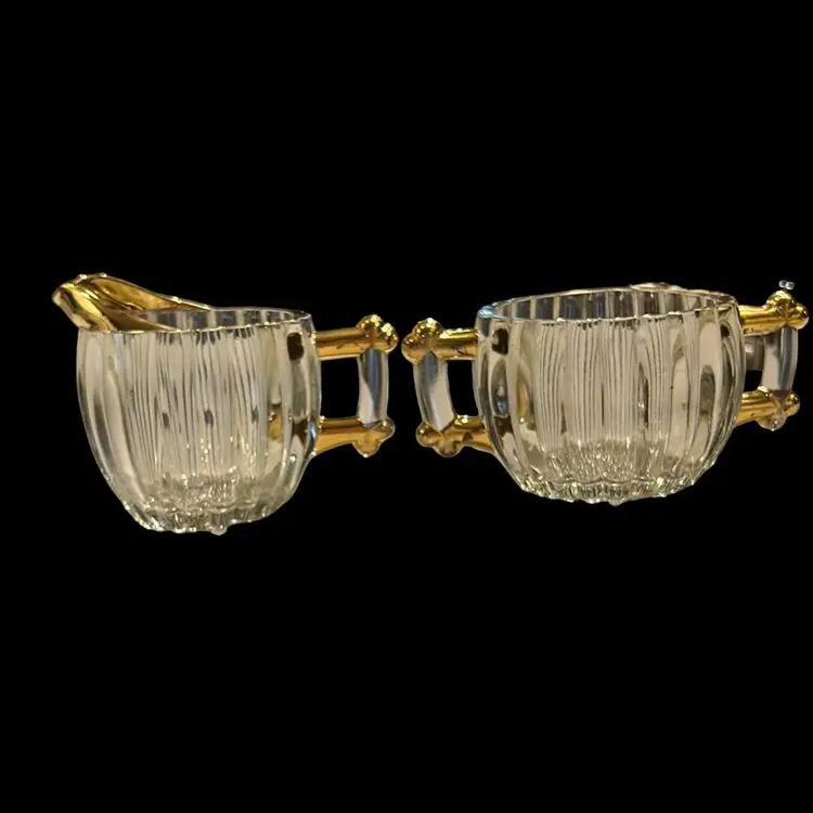 Beautiful set. The gold trim has very minimal wear there are No chips or cracks. The creamer is 3 1/2 inches tall and 4 1/2 inches wide. The sugar bowl is 3 inches tall and 5 1/2 inches wide.