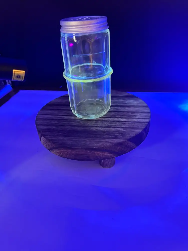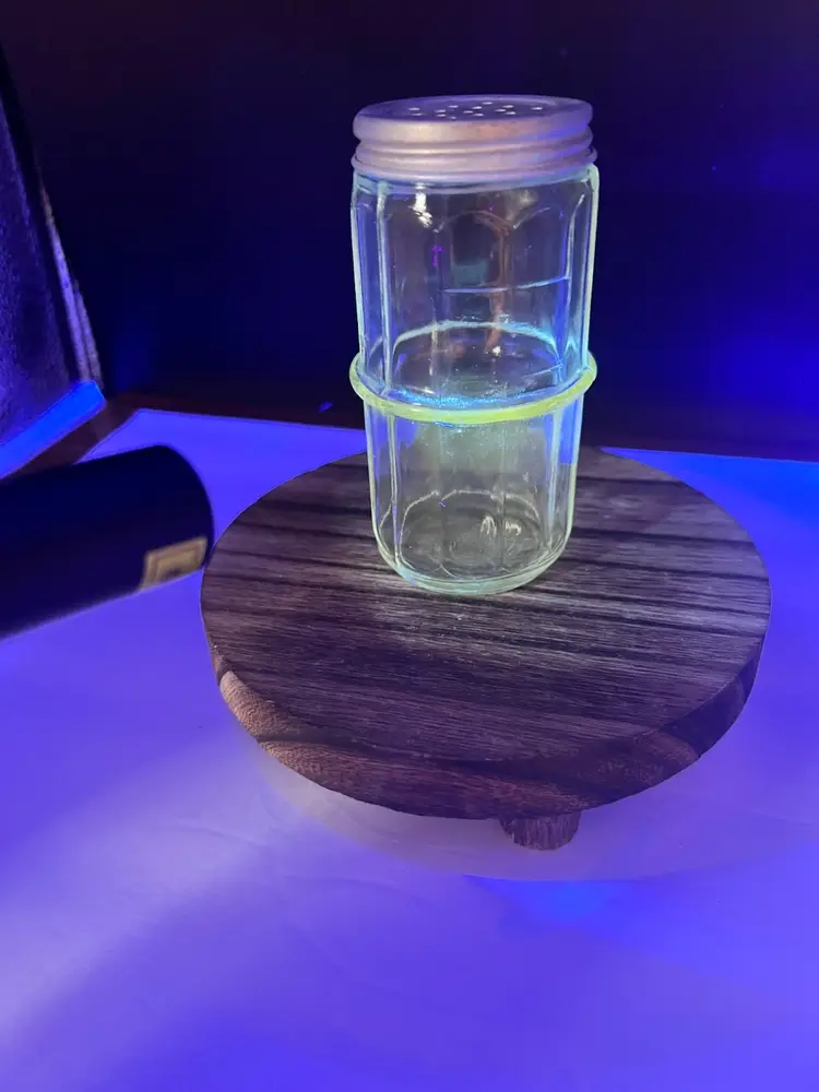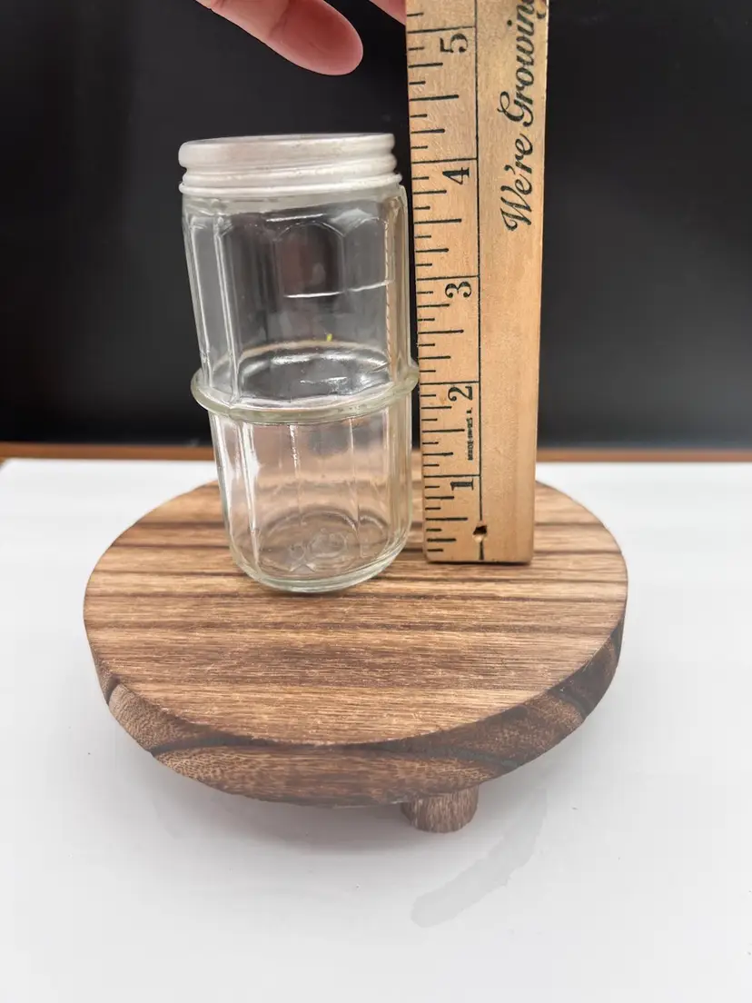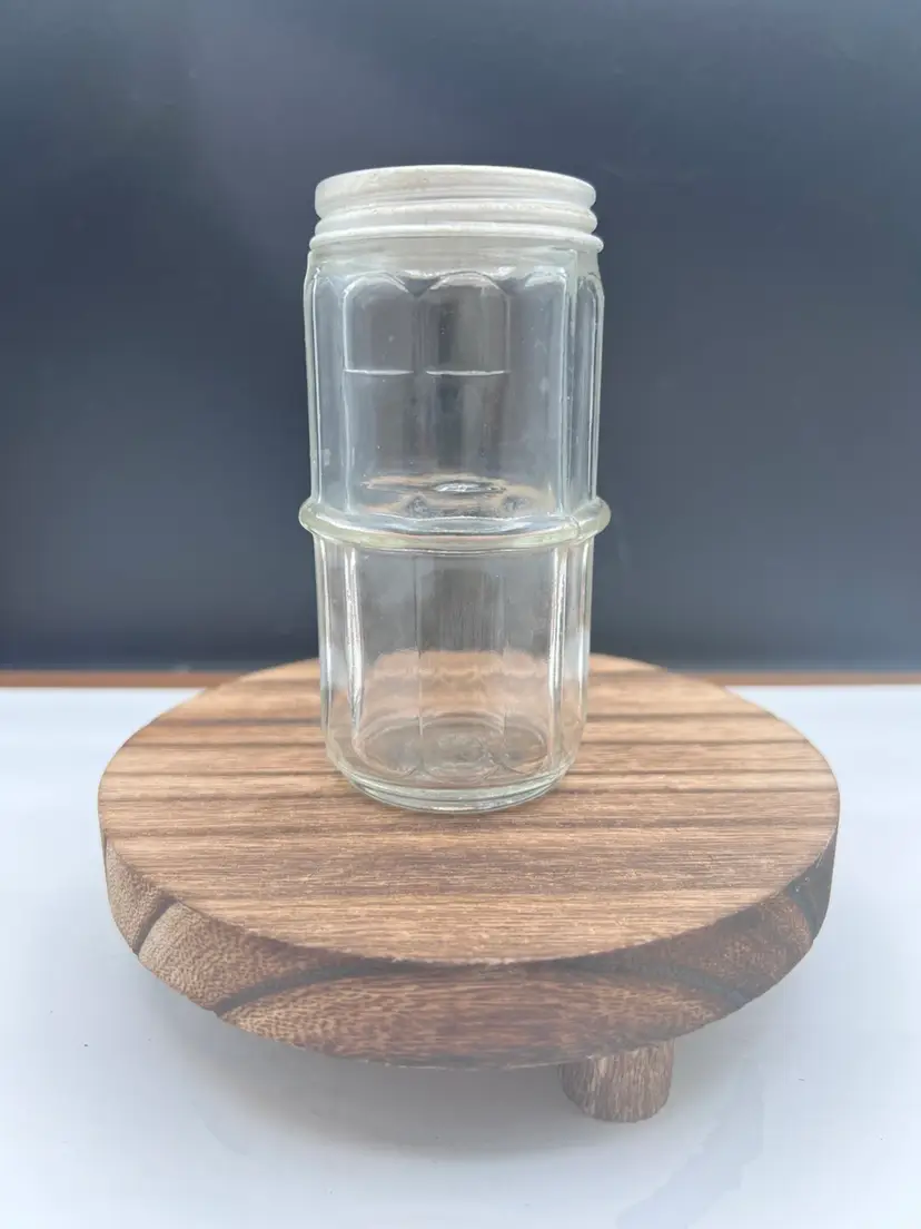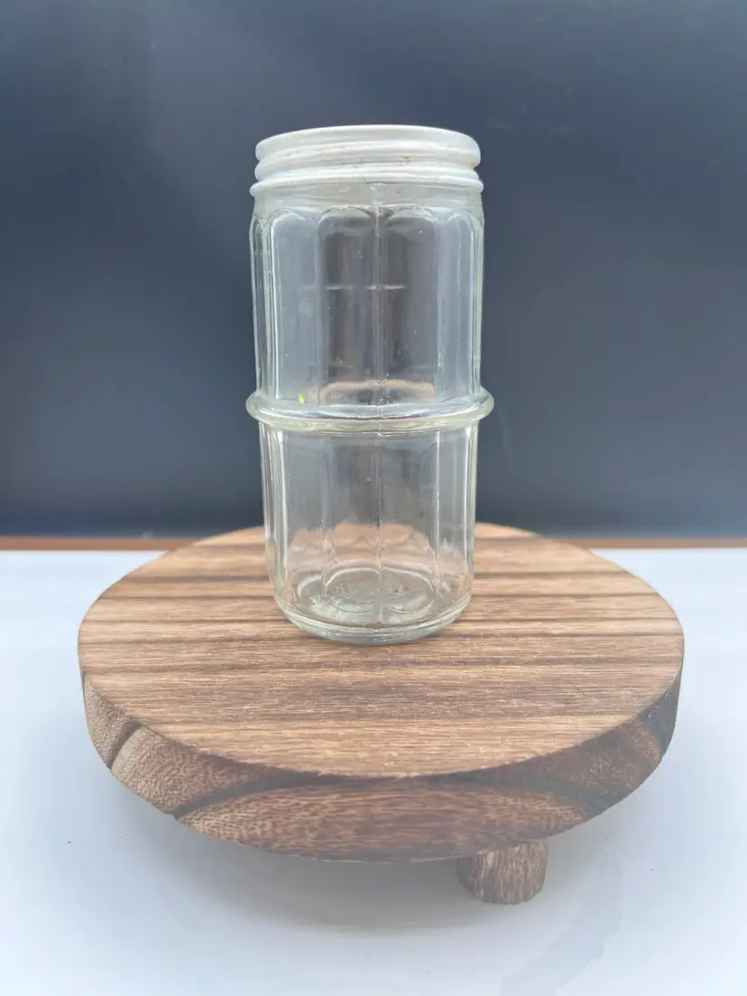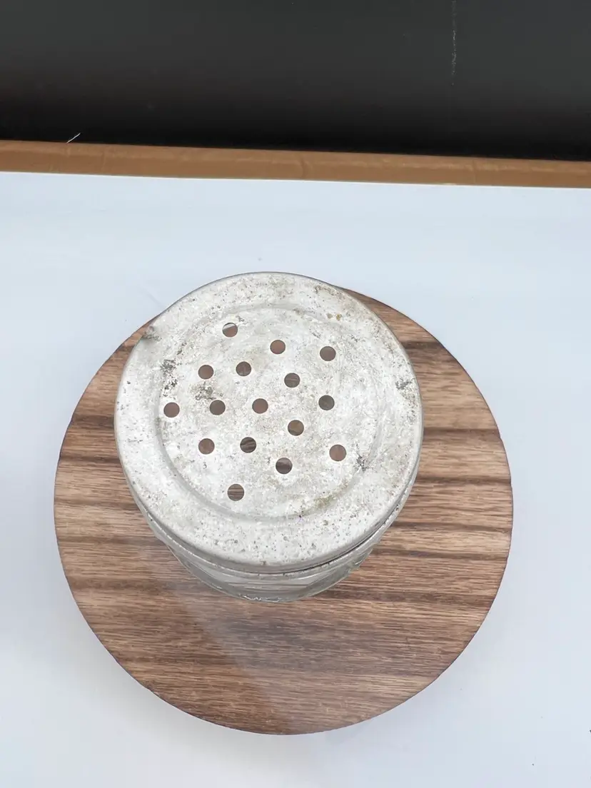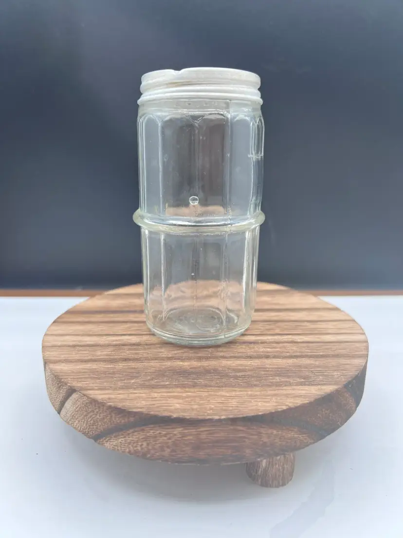 VINTAGE CLEAR HOOSIER COLONIAL SPICE JAR Includes aluminum/zinc shaker lid 4 1/4” tall x 2 1/8” in diameter In very good vintage condition, no chips or cracks. Lid does show some patina variations Has uranium glow