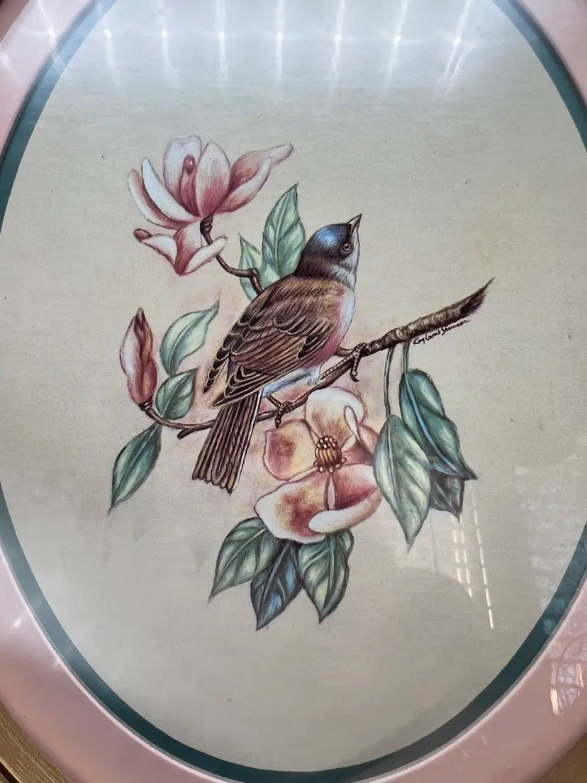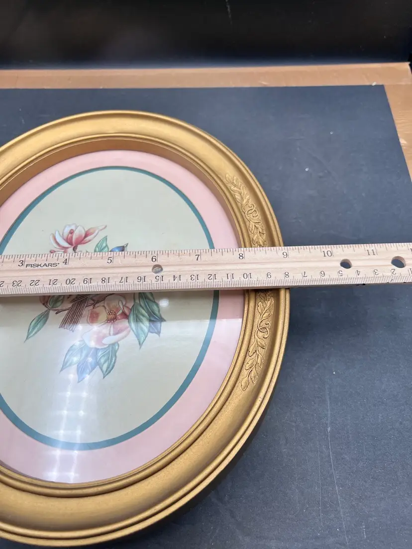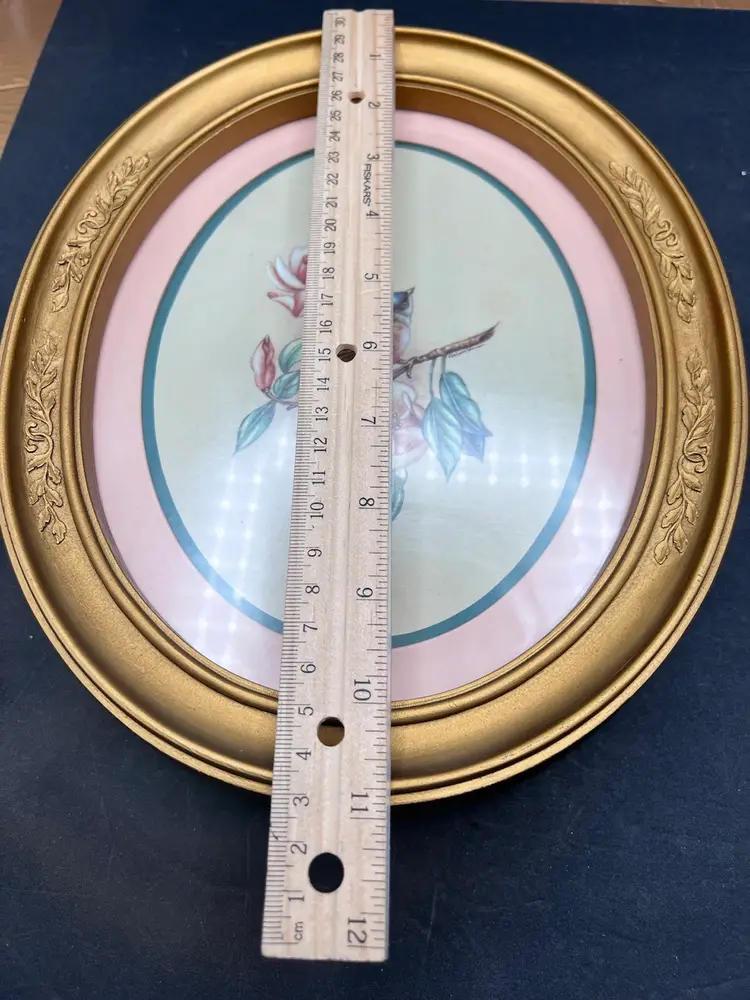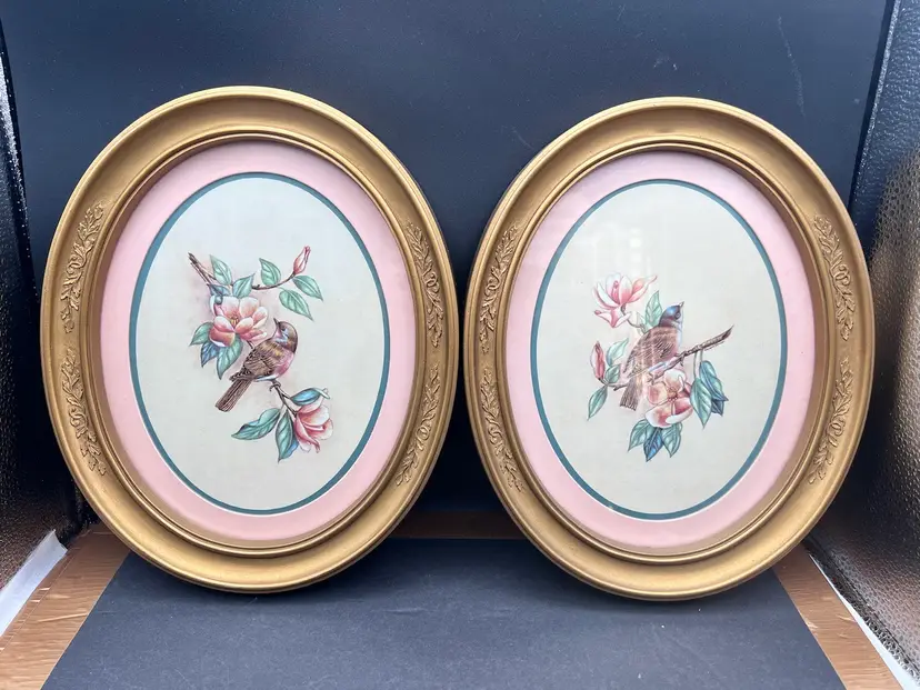 Vintage Set of 2 HOMECO Kay Lamb Shannon Birds Wall Hangings in Gold Oval Frames In excellent vintage condition, no chips or cracks 11" x 9"