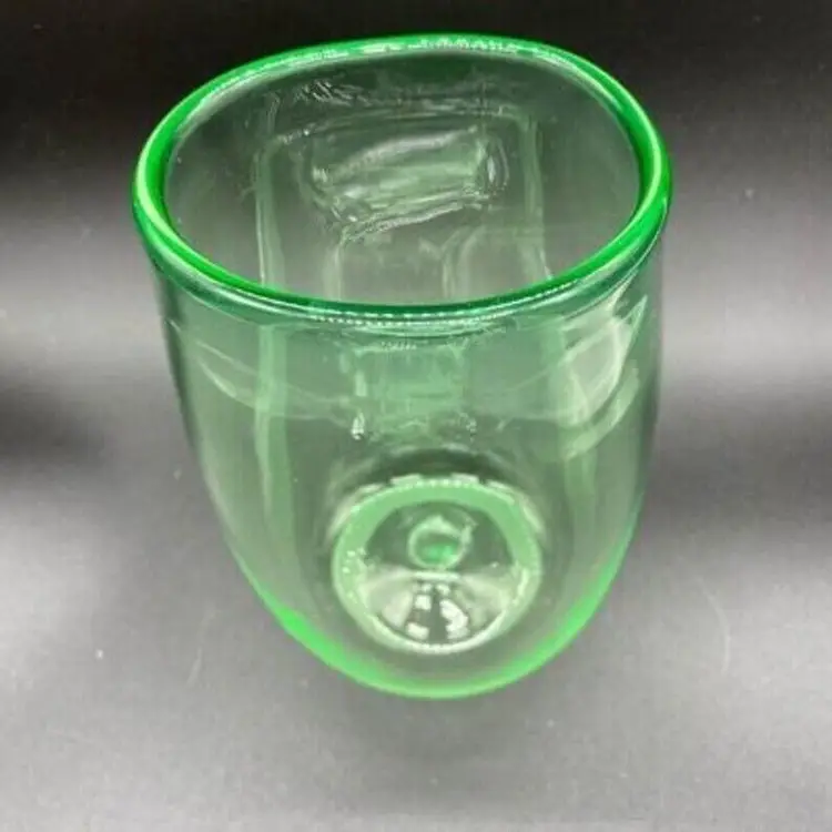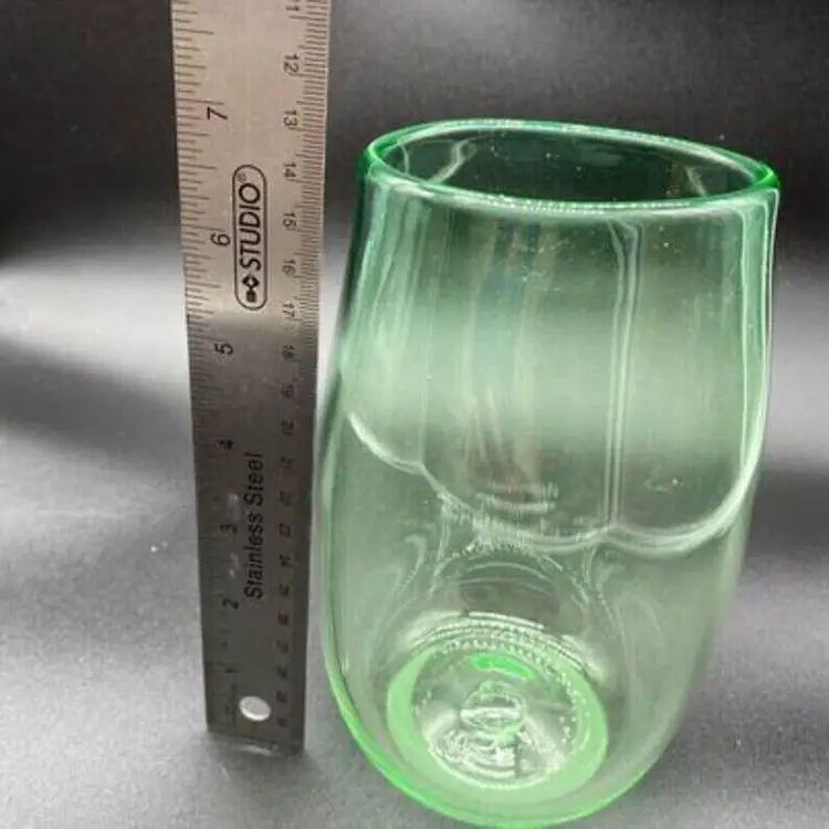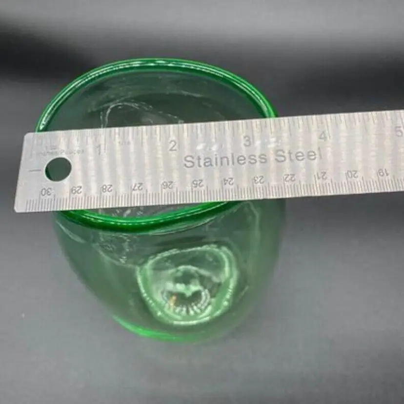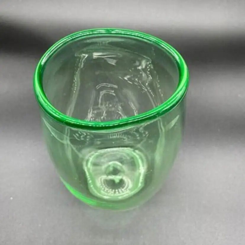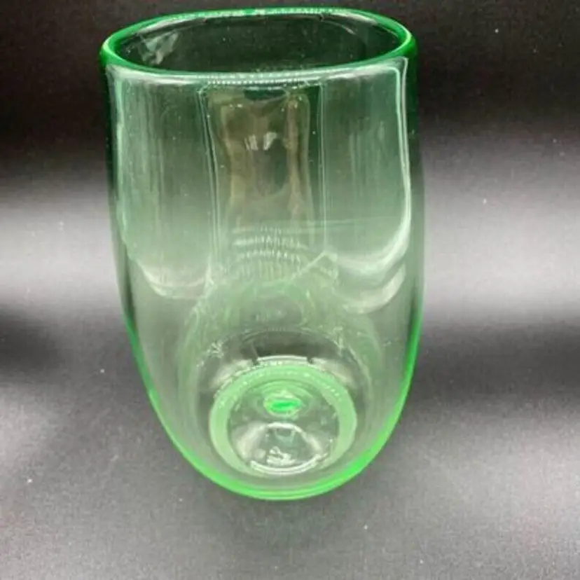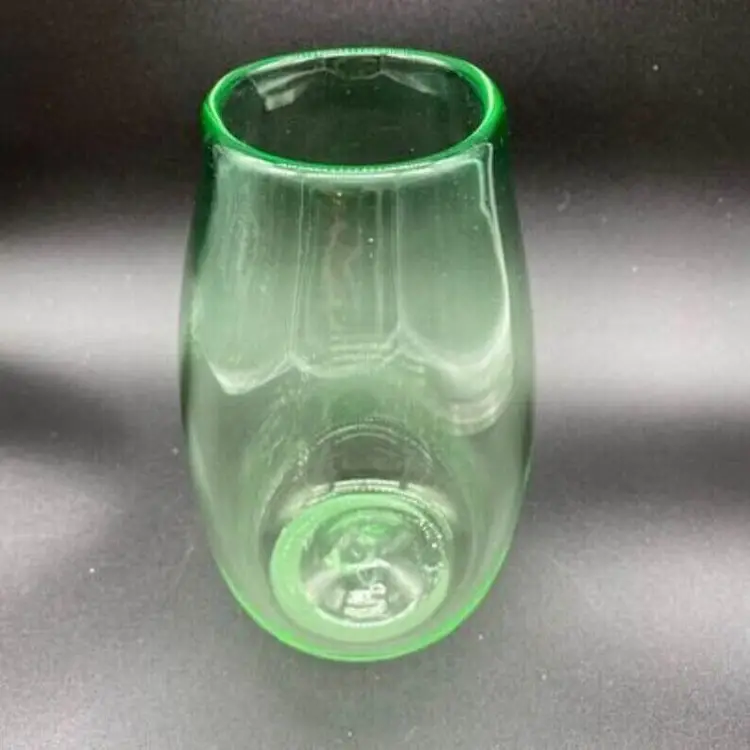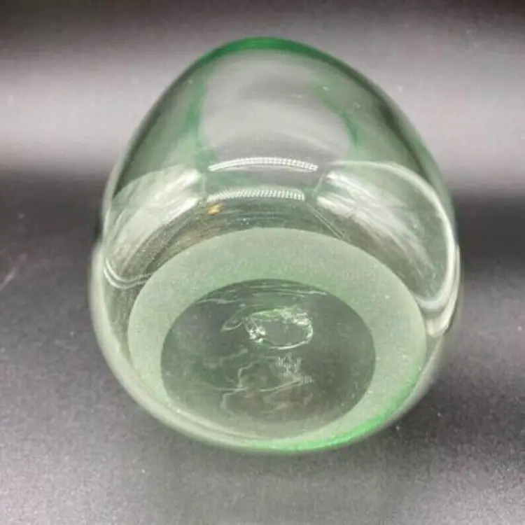 Made in USA no import tariff. Clear Green Beautiful piece of Art Glass in the form of a vase. High Quality hand blown with pontil mark on base. Free form oval shape wide opening and rolled rim. Artisan made. 18cm 7 in tall. Top opening 3.5 inch by 2.75 inch ovaloid Blown Art Glass Vase Oval 7 inch