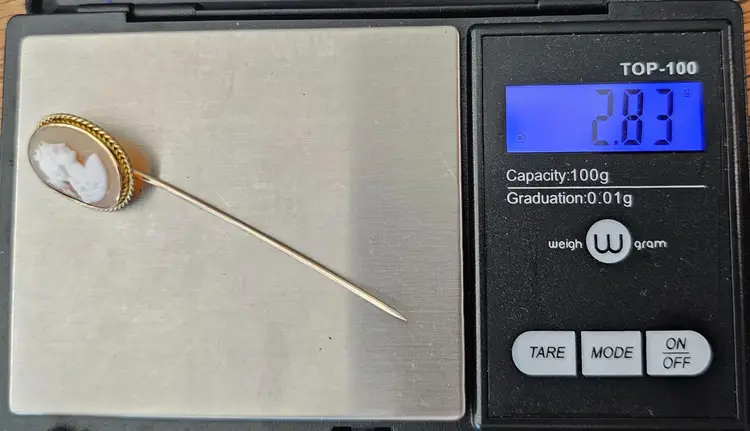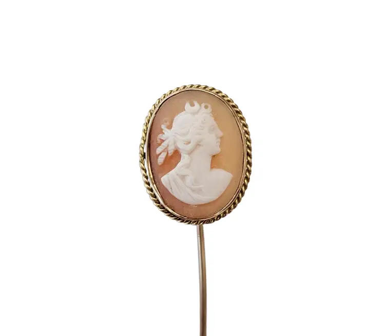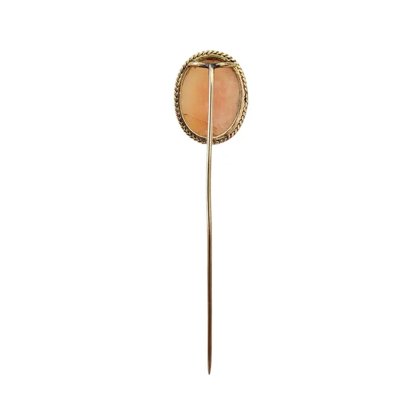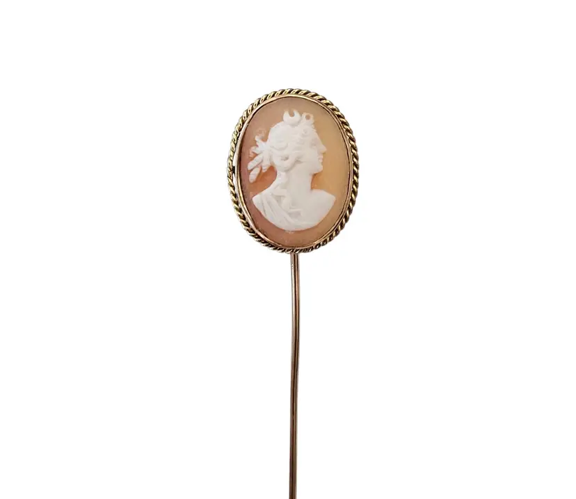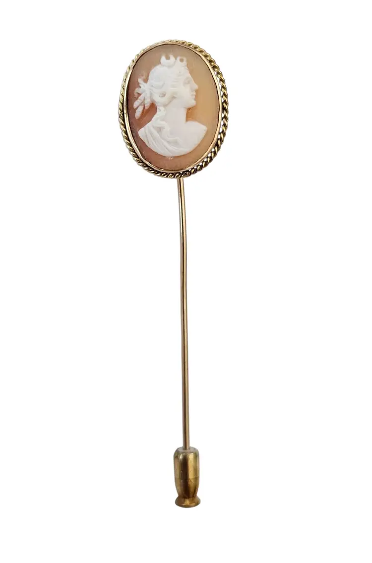 10K Yellow Gold Cameo Stick, Lapel Cameo Pin C275