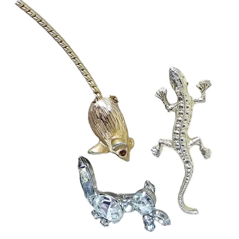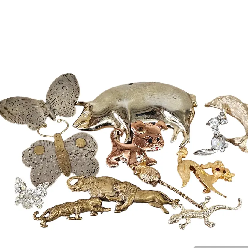 11 Animal Theme Broochs Yes Signed Treasures Mamselle Goldtone Puddle, Copper By Bell Puppy Dog and Sarah Coventry Mouse. These cuties will make you smile!! Make A Great Reseallers Lot!!!
