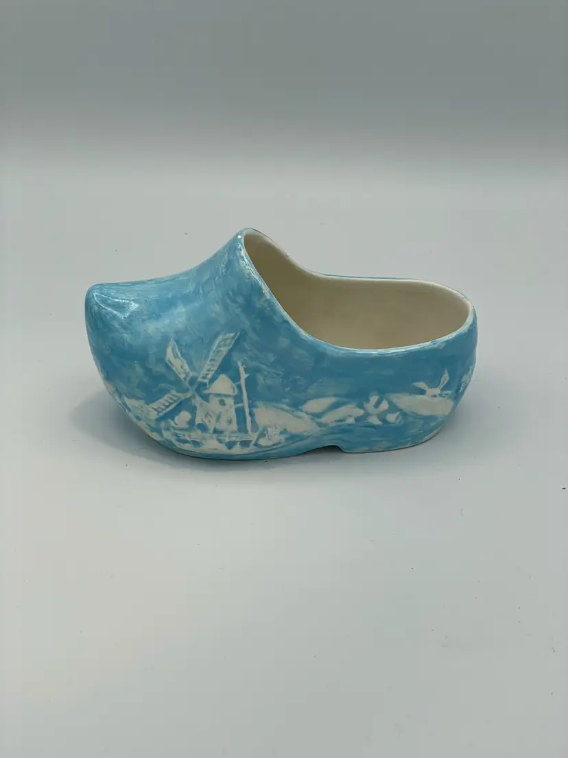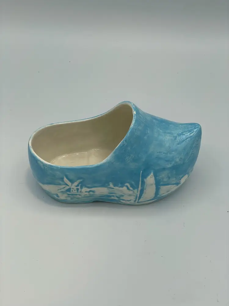 Vintage Turquoise Ceramic Dutch Shoe Planter. 5 1/2" Long X 2 1/2" H. No Chips/Cracks