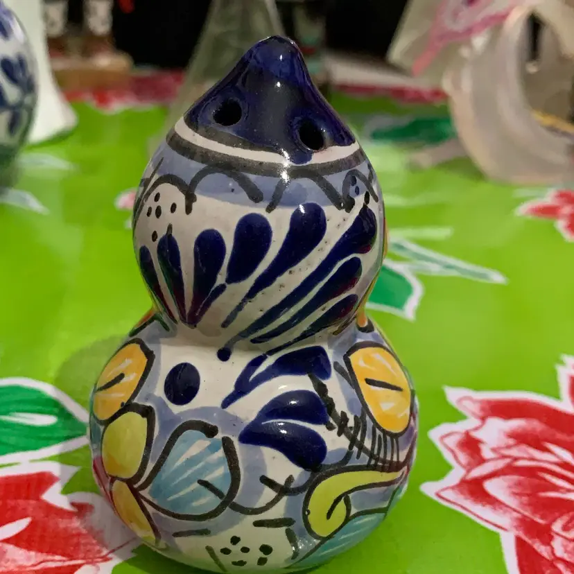 Origin: Talavera pottery originated in Talavera de la Reina, Spain, but the Mexican version, known as Talavera Poblana, developed in Puebla, Mexico in the mid-16th century. Material: It's made from a mixture of light, rose-colored clay and darker clay found in the Puebla region. It is a type of majolica or tin-glazed earthenware with a white base glaze. o Design: Talavera pottery features hand-painted designs with intricate patterns and bright colors. The designs often blend indigenous and European influences.