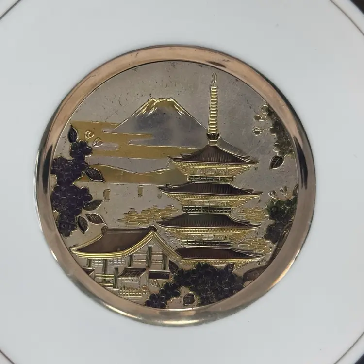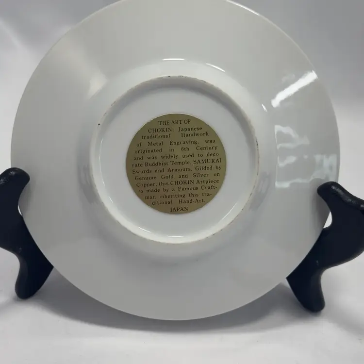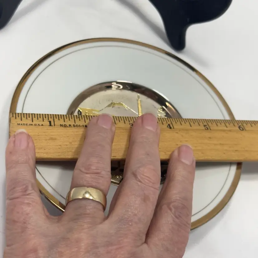 6", 7oz, plate is in good condition, no chips or cracks,, some marks mild scratches on the gold due to age and use