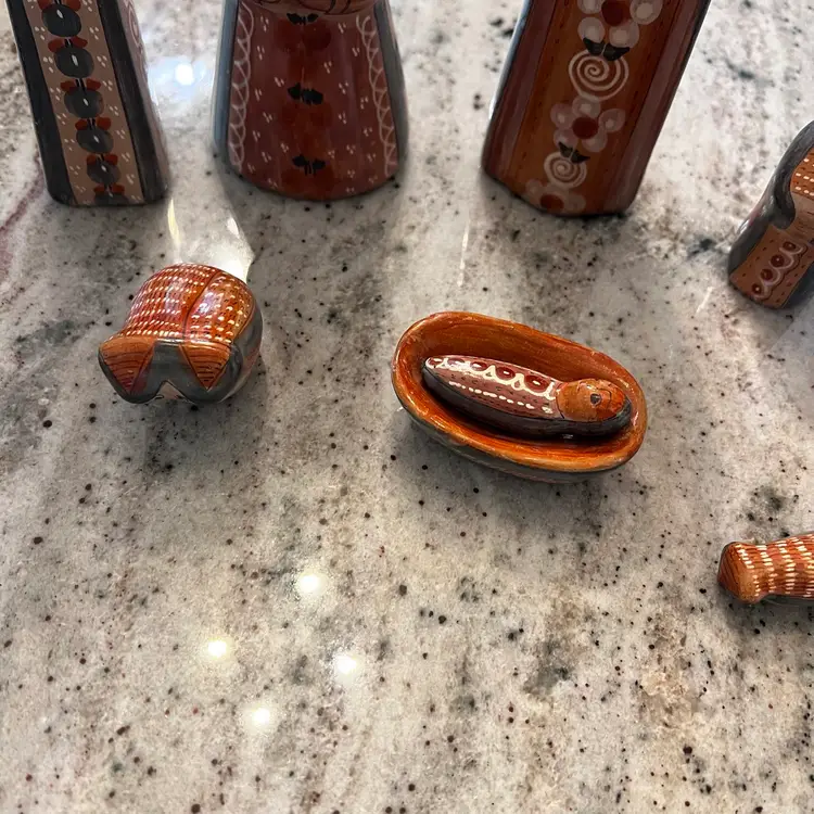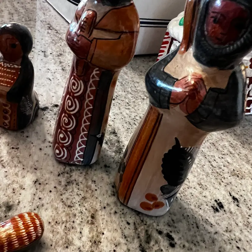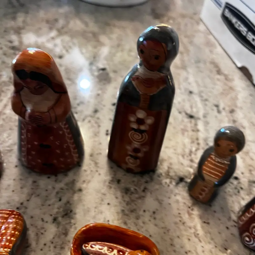 There are 11 pieces all in really good condition. They vary in size from an inch and a half up to 5 1/2 inches tall.