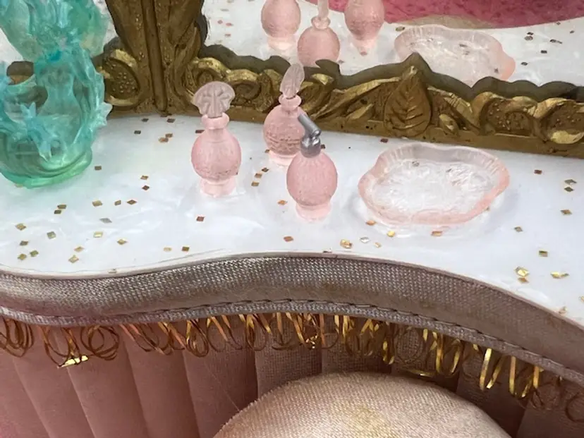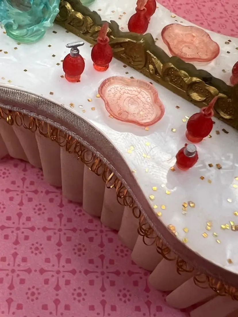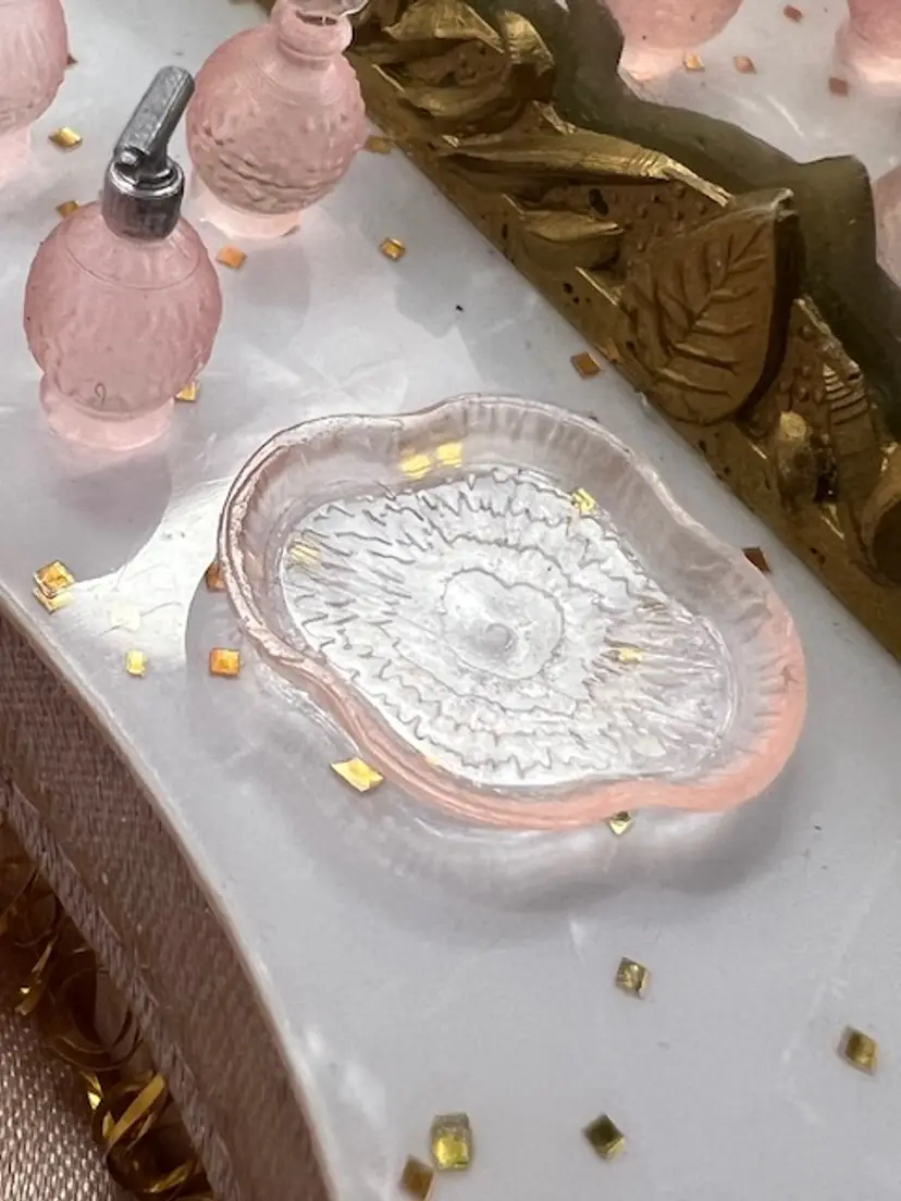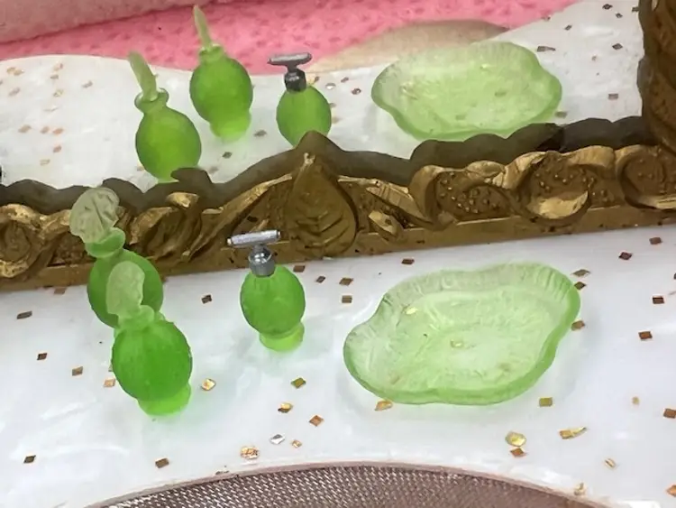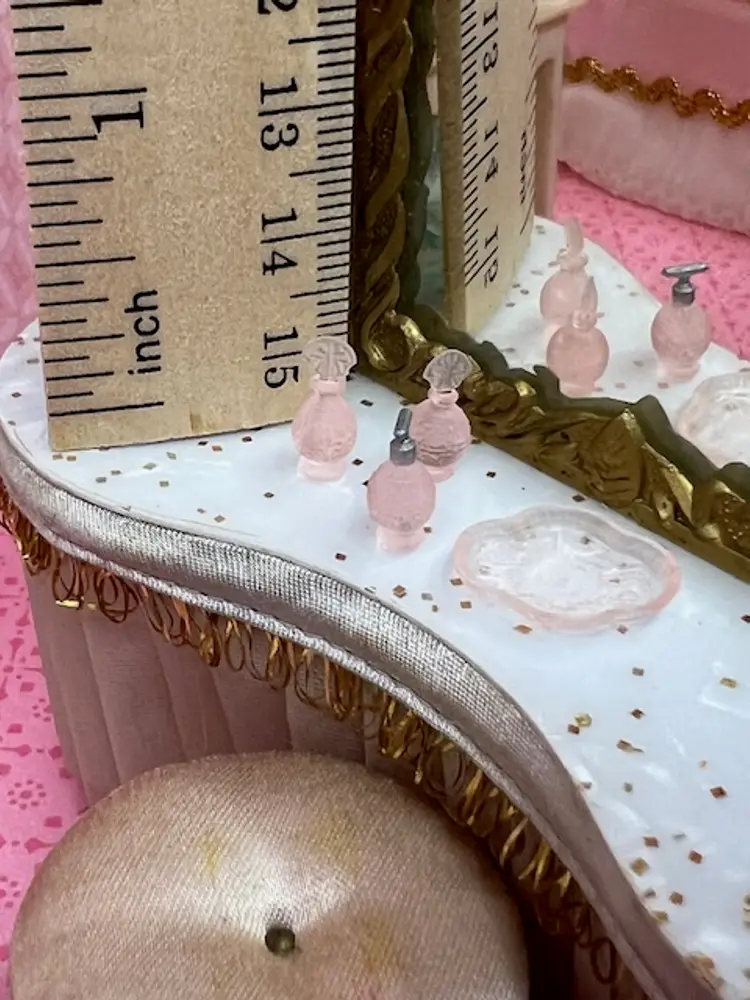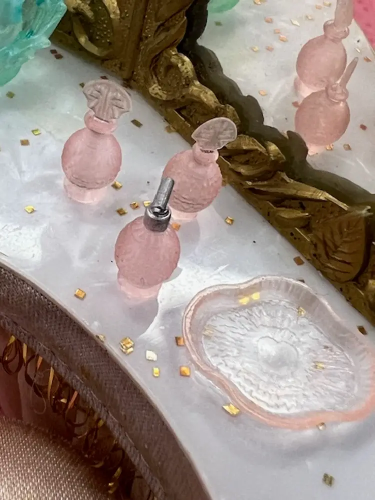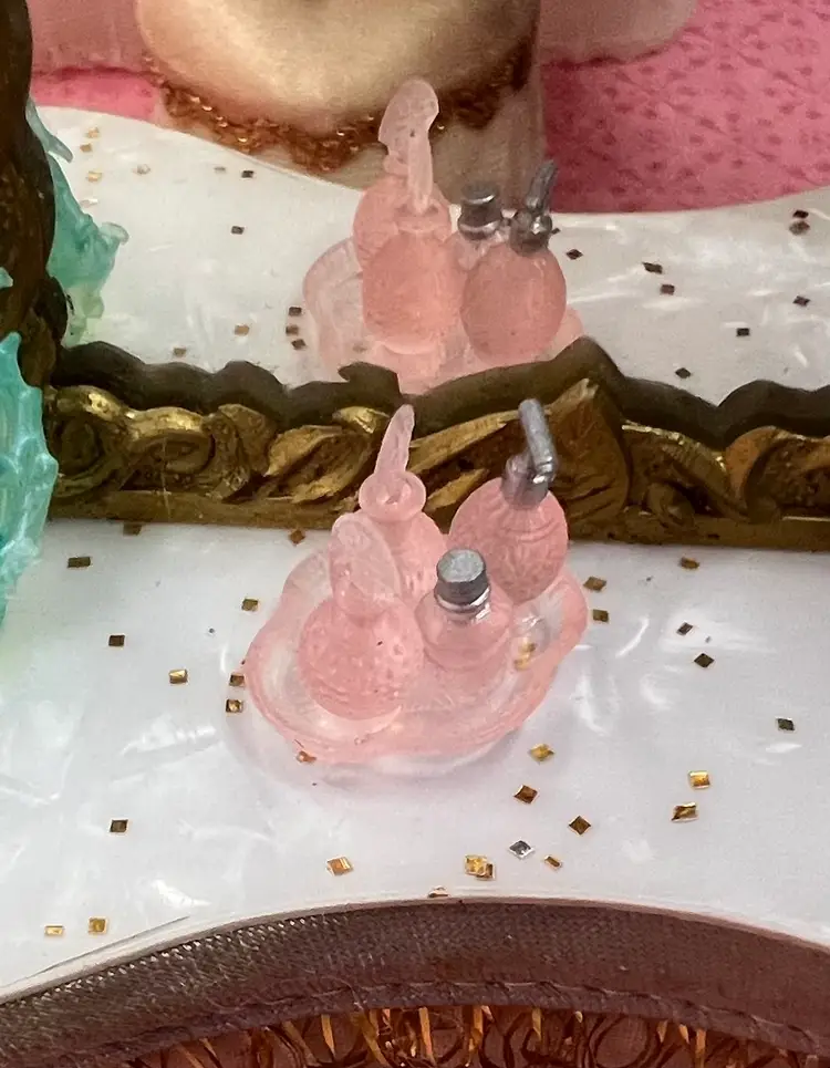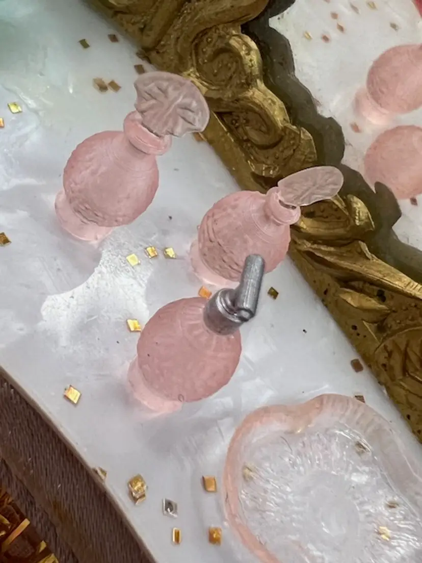 1:12 Miniature Dollhouse Art Deco Inspired Perfume Set Resin and Hand painted Detail Set Includes 2 Bottles 1Atomizer 1 Nail Polish & Tray