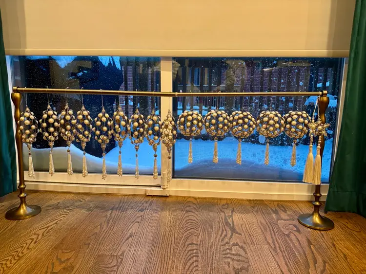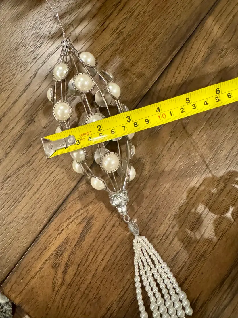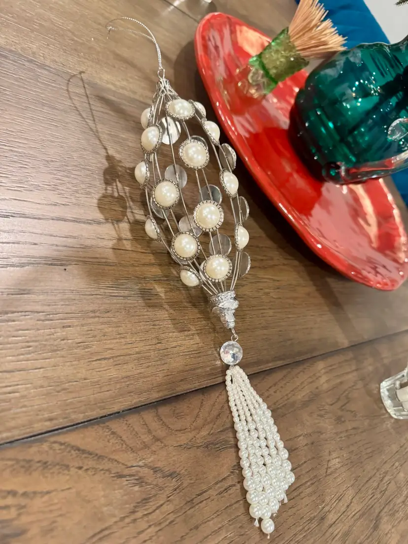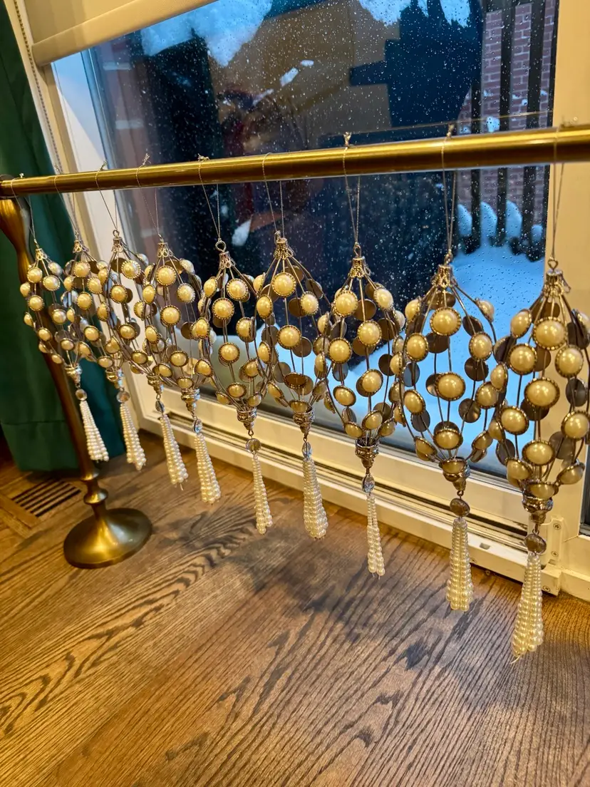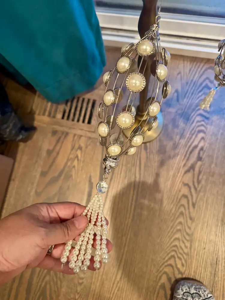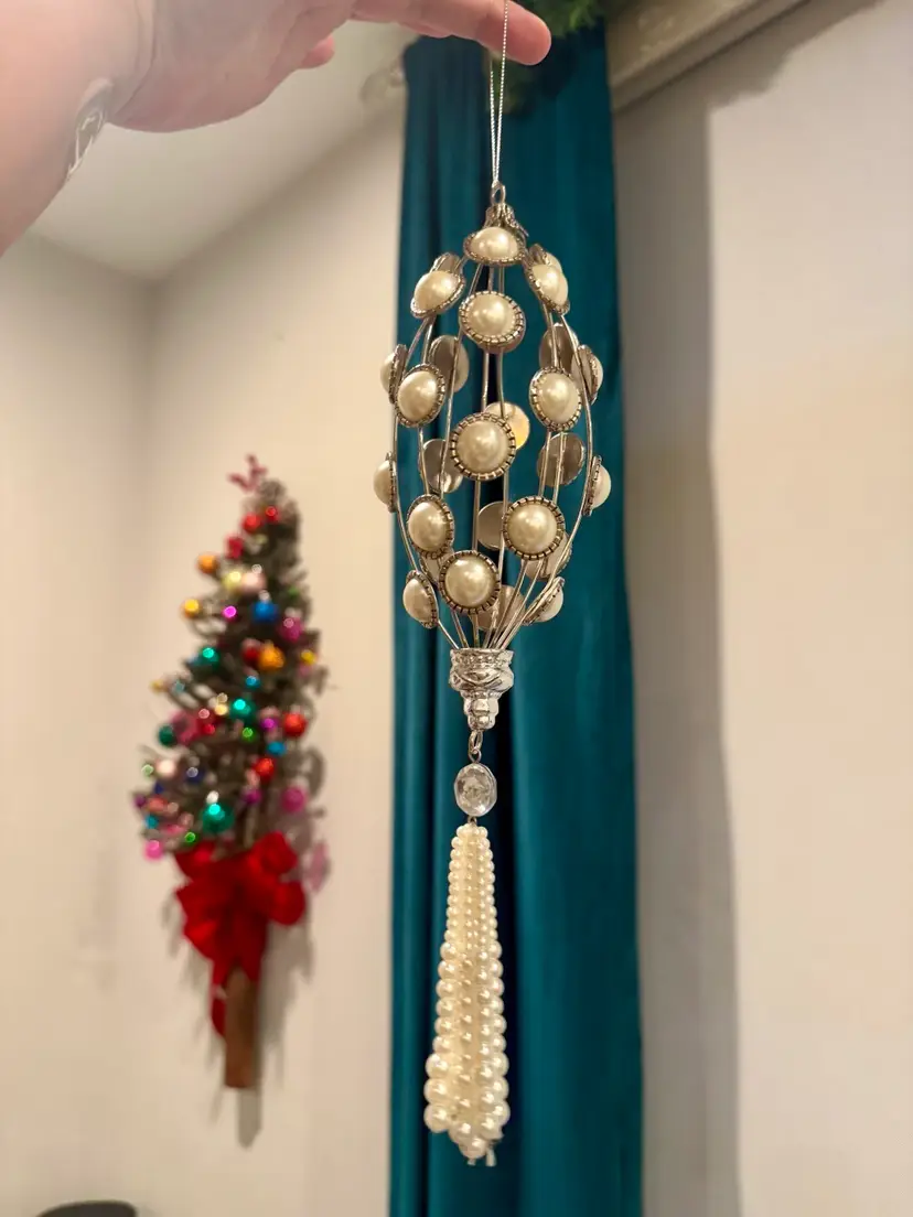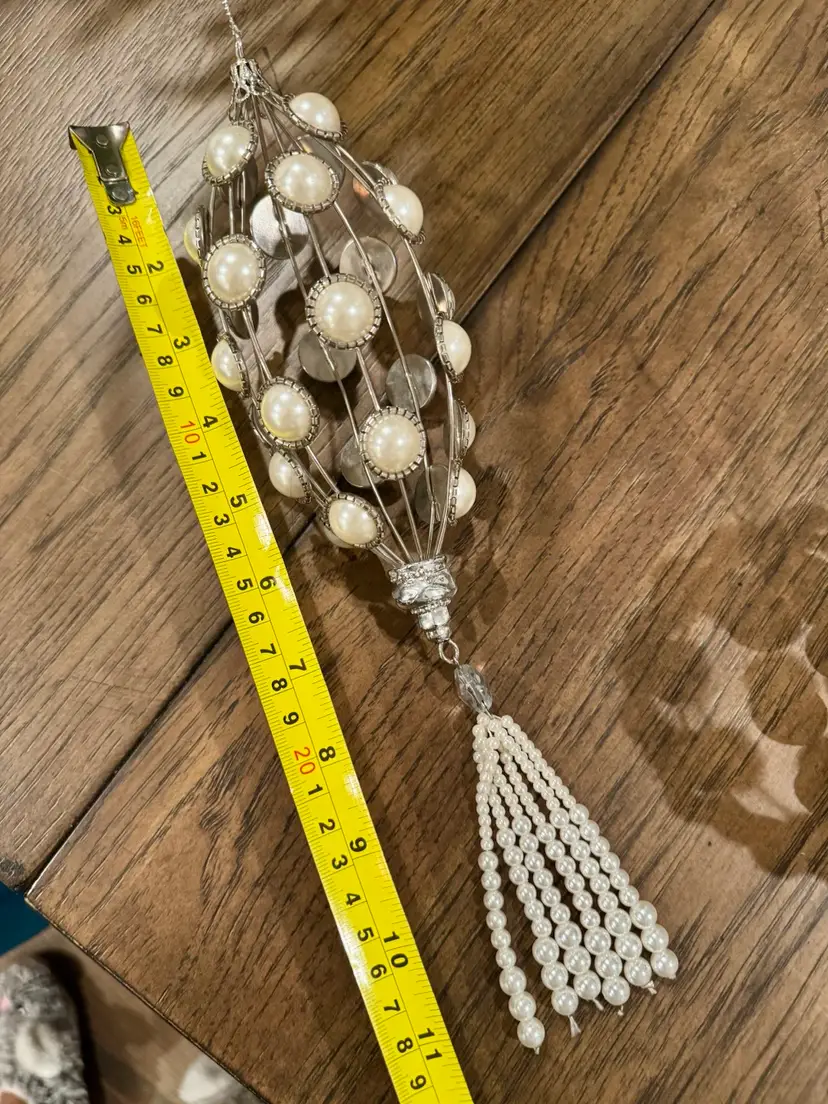 Show stopper big beautiful christmas ornaments. Only one ornament is missing one pearl all the rest are in excellent condition. I have owned these and put them on my tree for the past 20 years. High end quality. If you’re interested in less than 9 ornaments, email me and make me an offer.