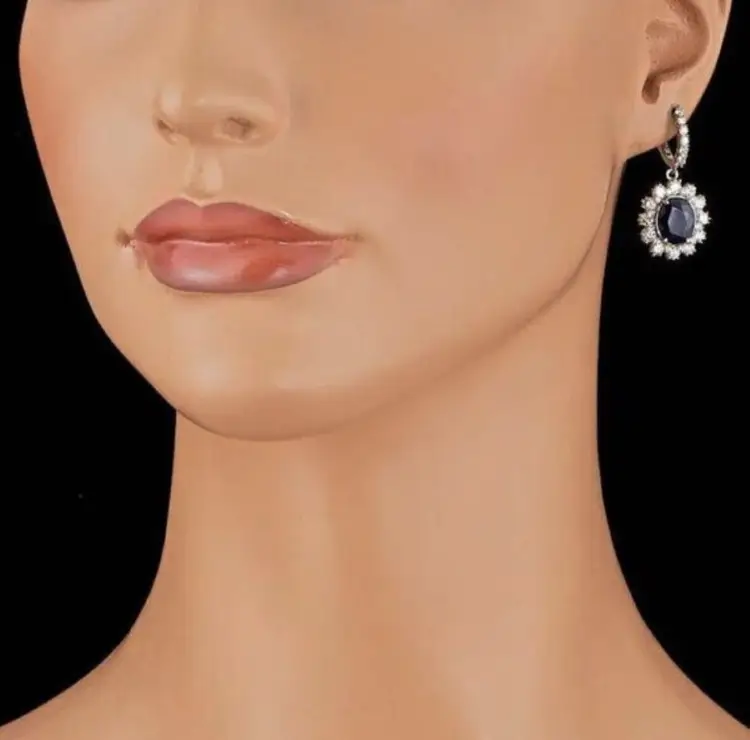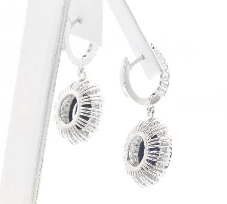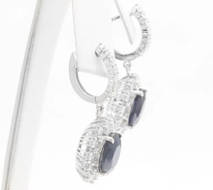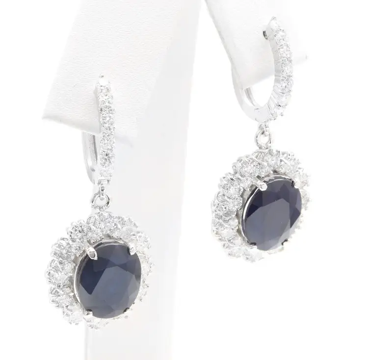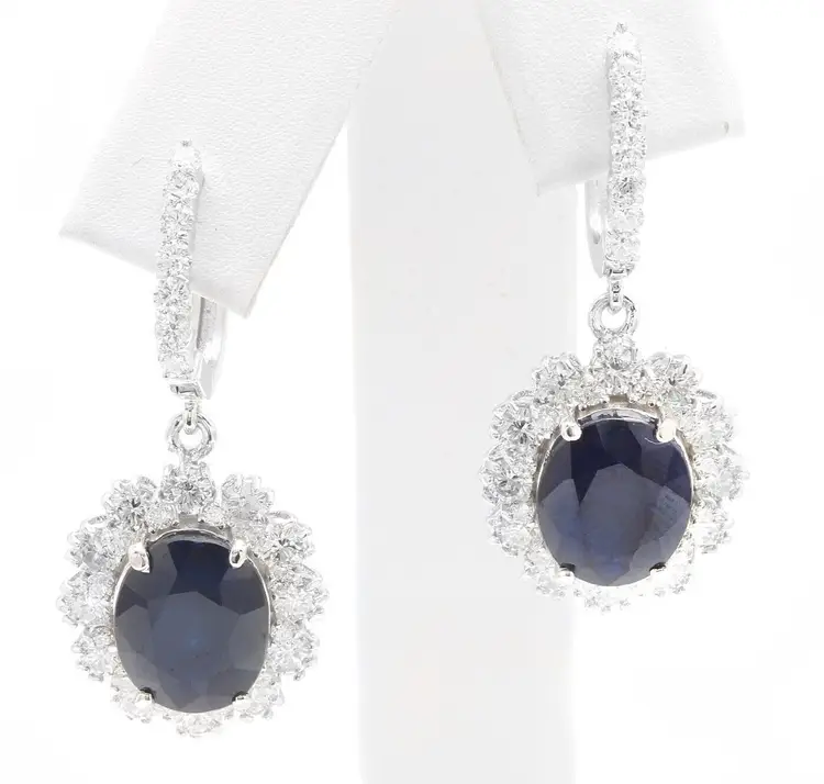 Main Stone Creation: Natural Material: Gemstone Main Stone Color: Blue Metal: White Gold Secondary Stone: Sapphire Main Stone: Sapphire Brand: Unbranded Main Stone Treatment: Diffusion Type: Earrings Metal Purity: 14k solid gold Main Stone Shape: Oval Theme: Nature Style: Drop/Dangle Total Carat Weight (TCW): 12.30 Country/Region of Manufacture: United States