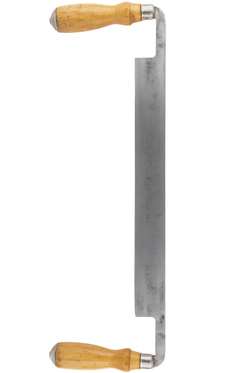 An Excellent 12" Greenlee draw knife (17.5" total length). There is an owner stamp that is partially obscuring the Greenlee stamp. It is nice and sharp and there is no pitting or damage. Handles are very solid as well.