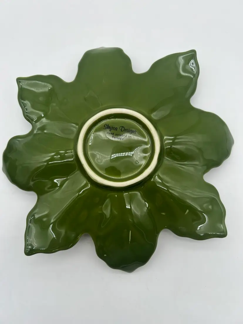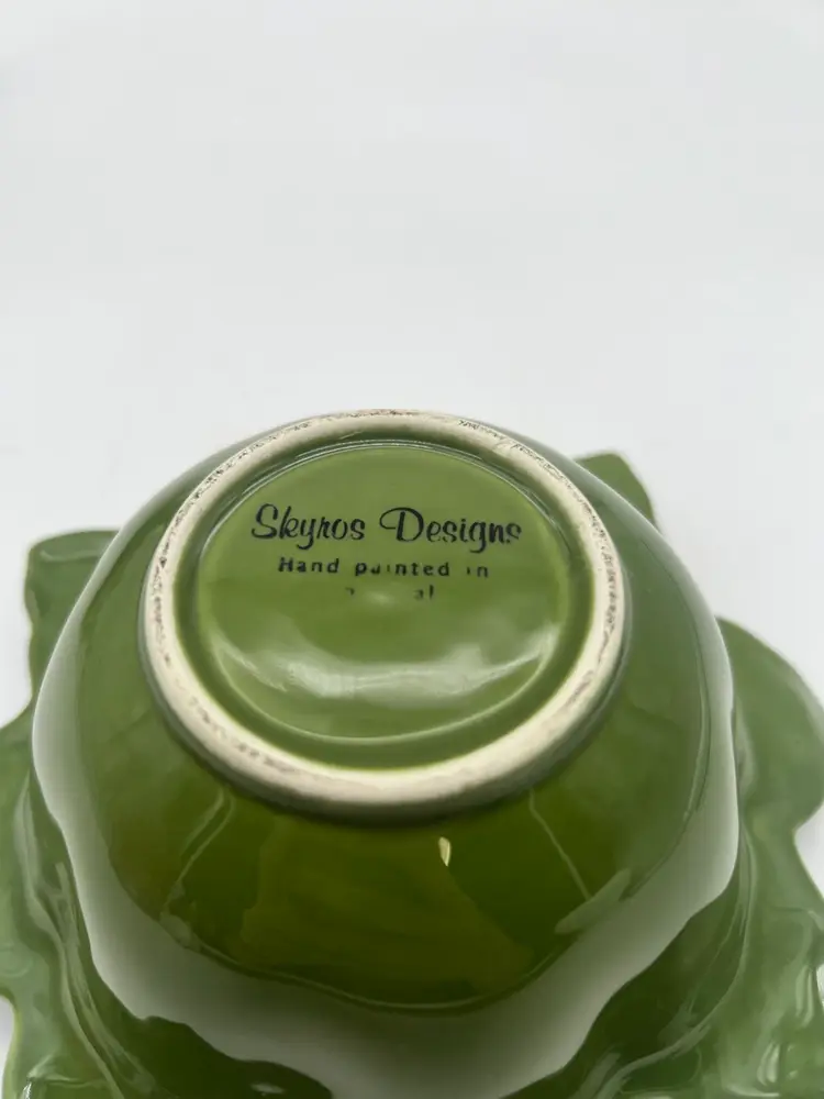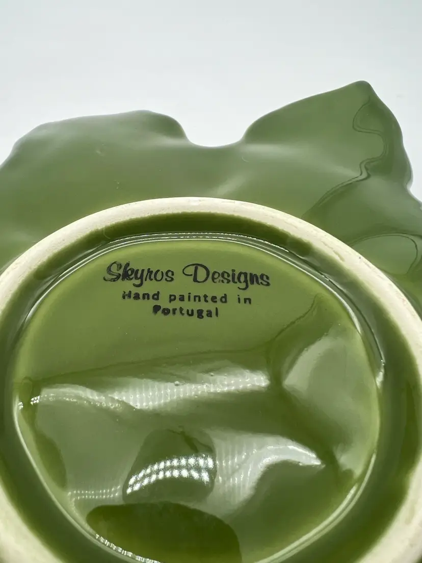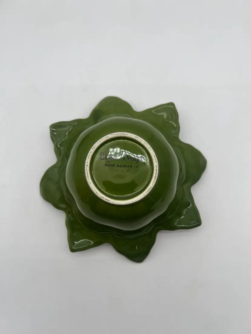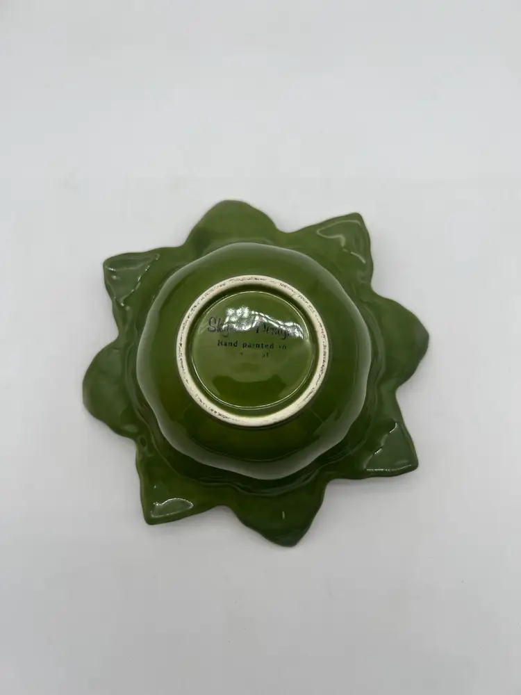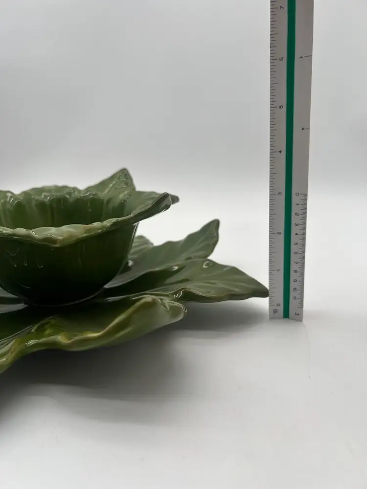 Great condition. No chips or cracks. Plate measures approximately 12” at the widest place. The bowl measures approximately 7.5”.