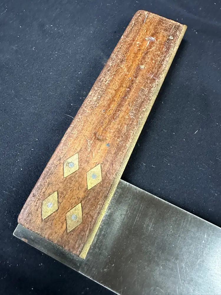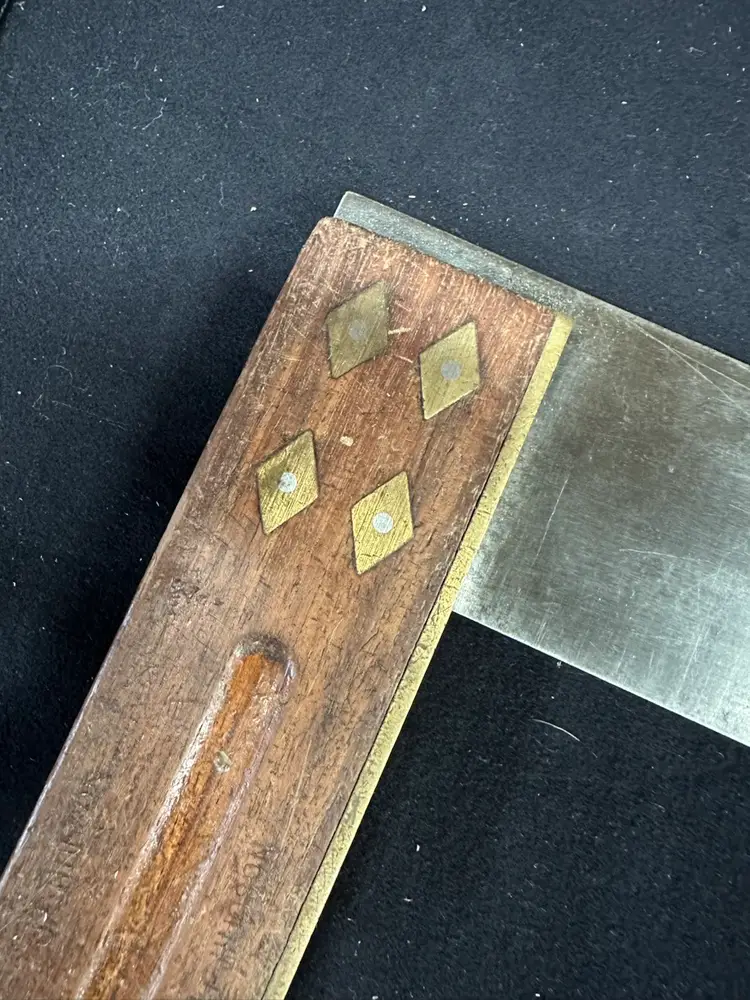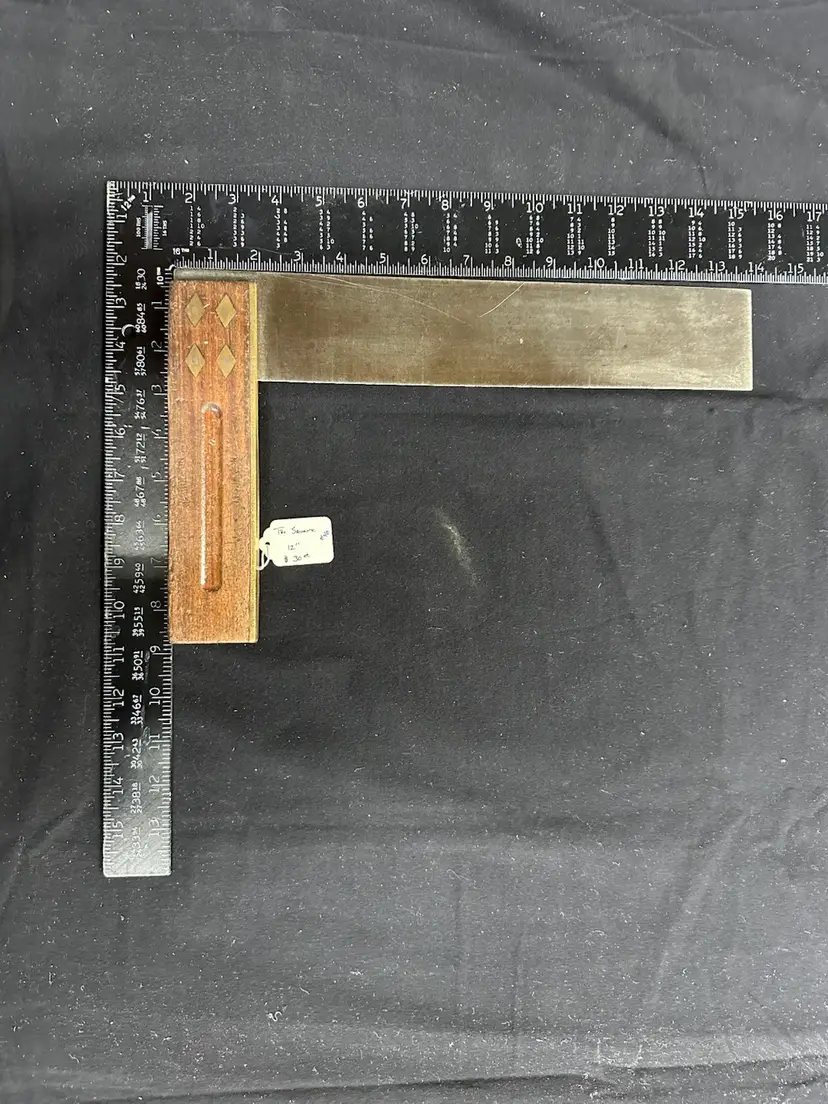 12” Rosewood and brass tri-square. Excellent condition: straight , square, and no rust ready to use. This square came from a hand tool woodworking school where it was in daily use.