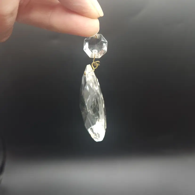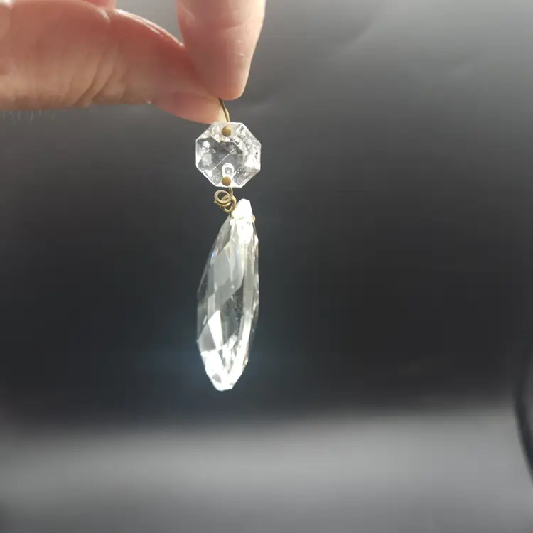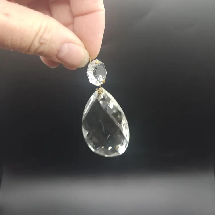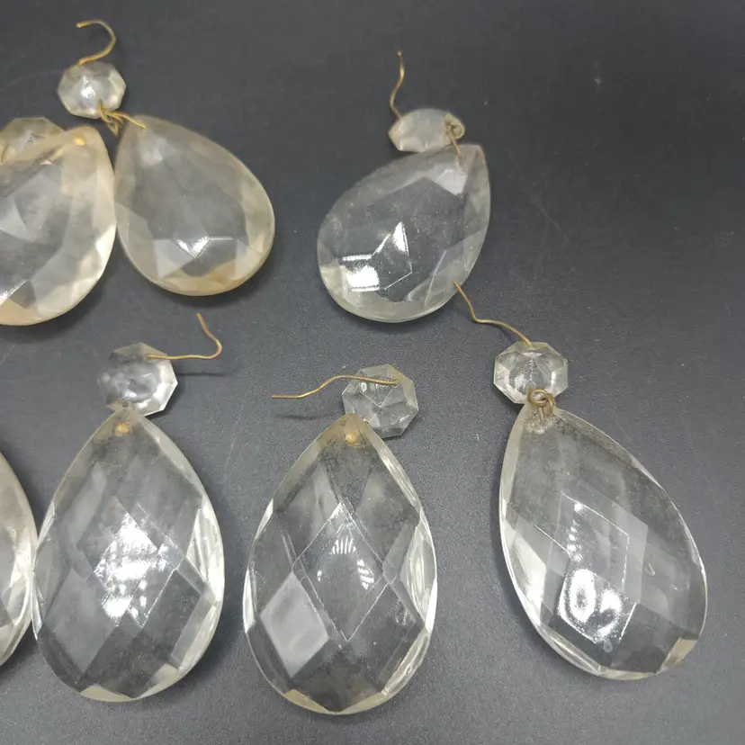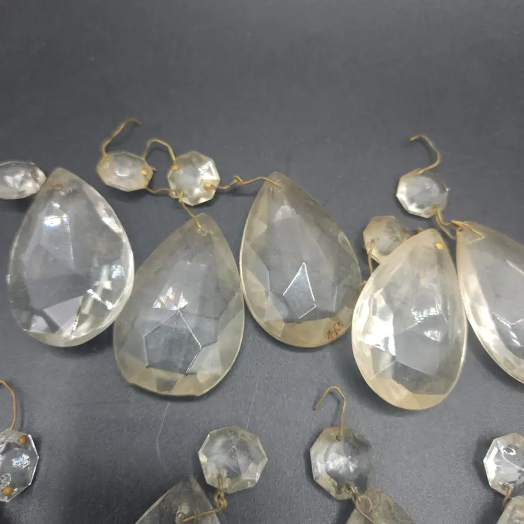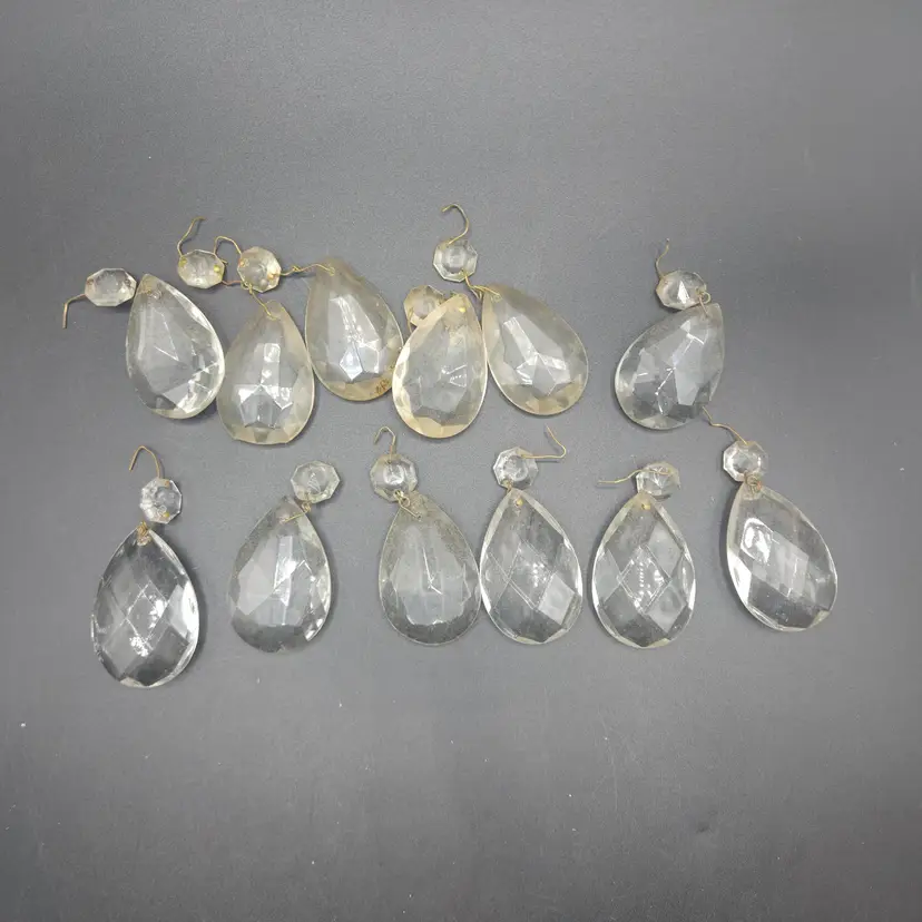 12 Vintage 2" Full-Cut Almond Teardrop Crystal Chandelier Prisms Two-Piece. Good condition, no cracks or chips. They are 2 piece and all have the wires for hanging. 2.5" long with both pieces.