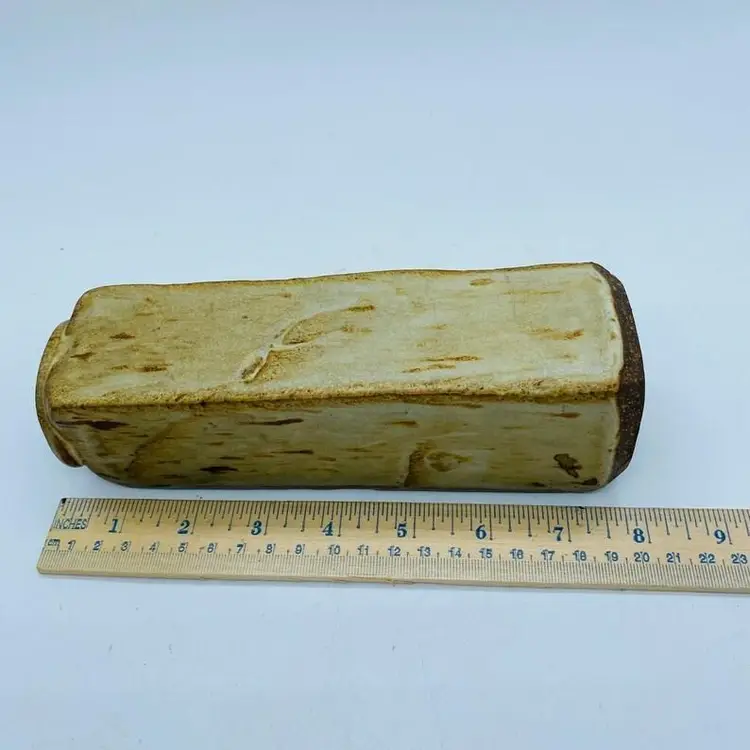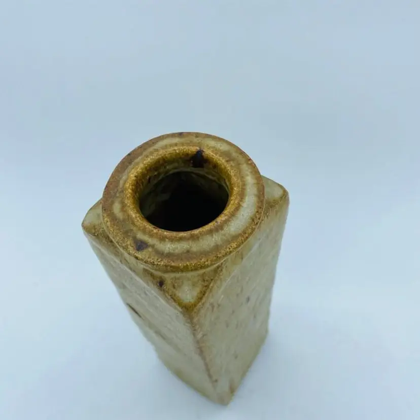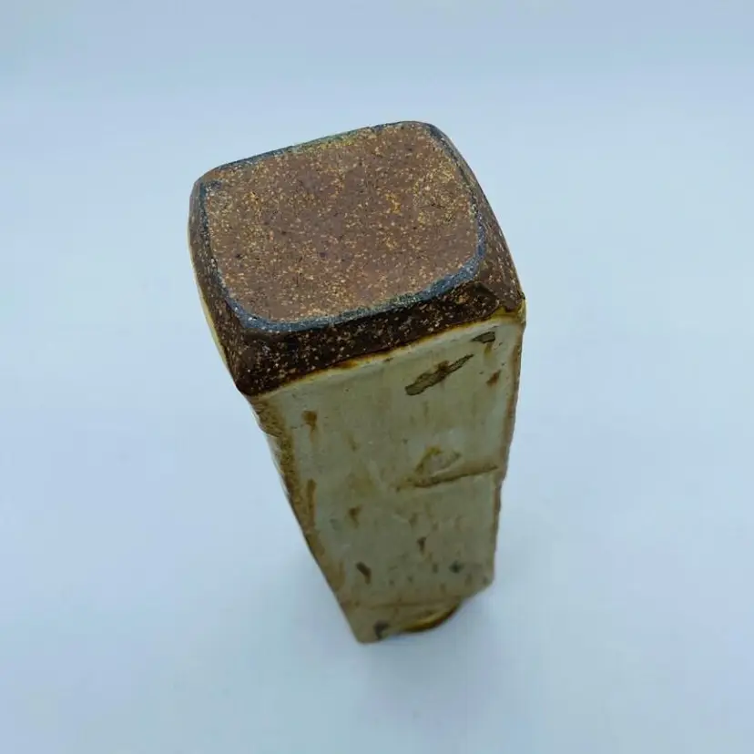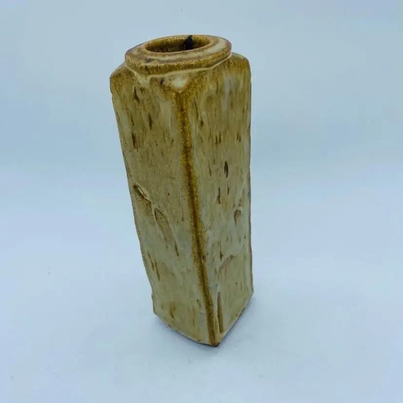 Rustic Ceramic Heavy Stone Vase Square Mottled Brown. Approx 8 inches tall and two inches square. Perfect vase for lover of natural materials and rustic decor.