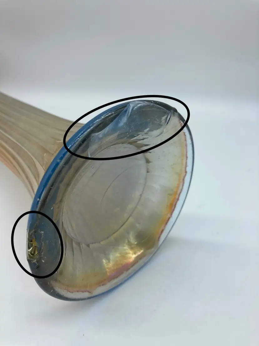 -Pre-owned, good condition -Has a chip and a cracked area underneath, see pictures -4.5” across top