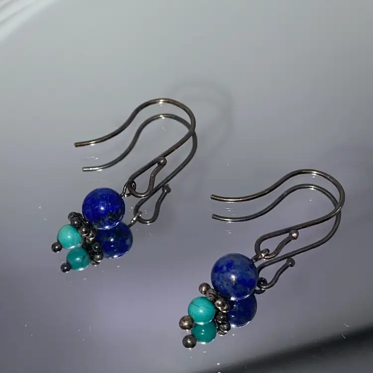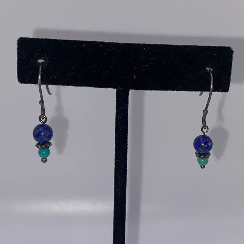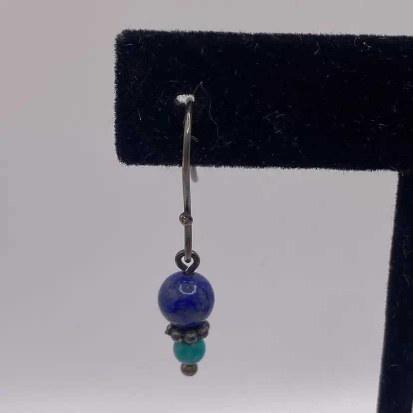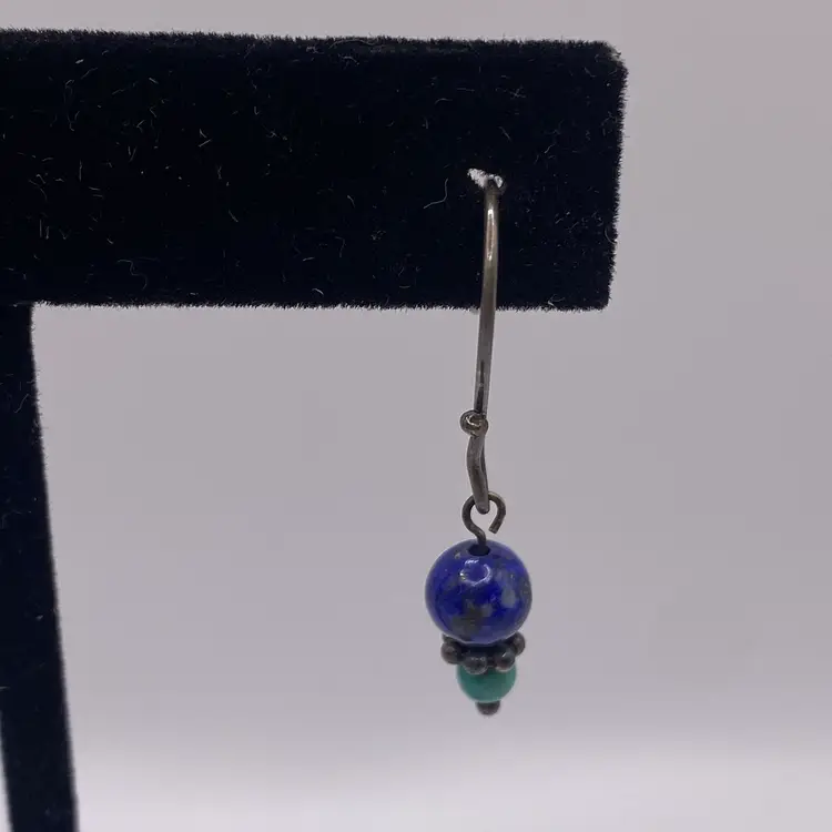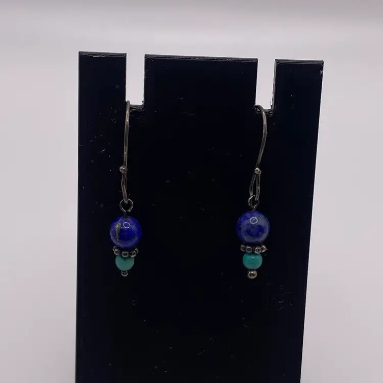 Add a pop of color to your outfit with these stunning 1.25" round beaded earrings. The earrings feature natural lapis lazuli and turquoise gemstones that are sure to catch the eye. The hook closure makes them easy to wear and they are perfect for both casual and formal occasions. The earrings are made of 925 sterling silver and are 1.25" in length. They are a perfect addition to any jewelry collection and are sure to become a favorite.