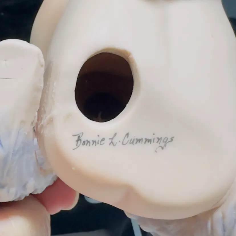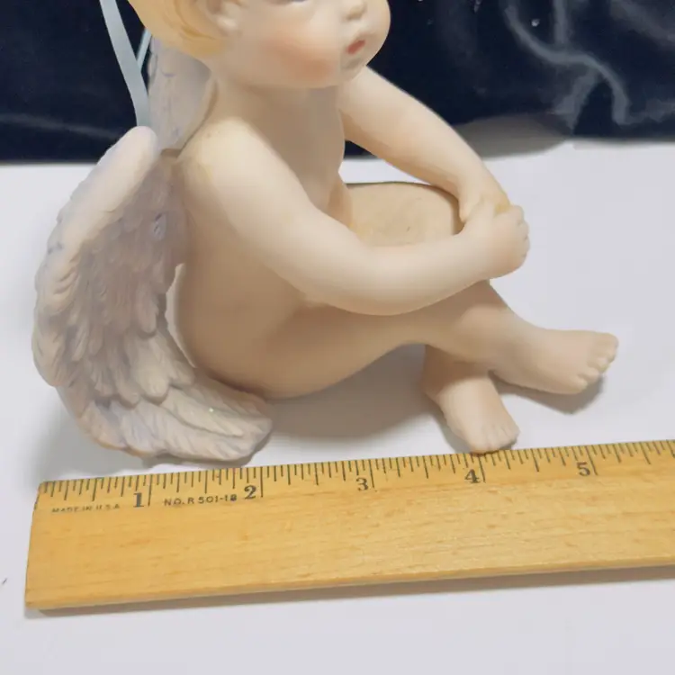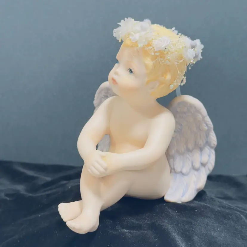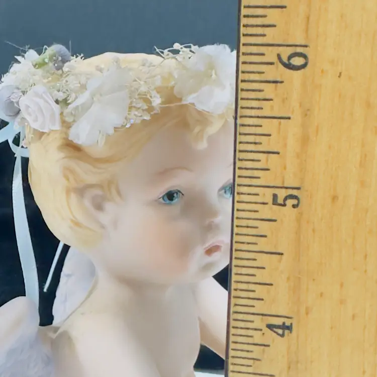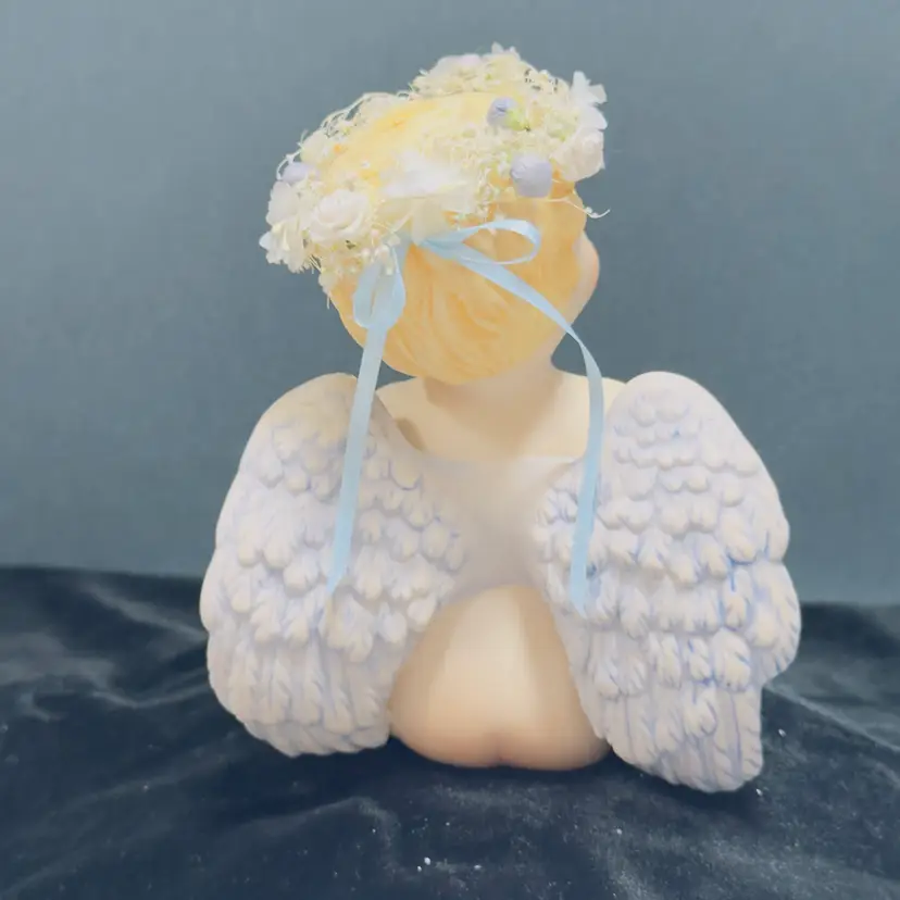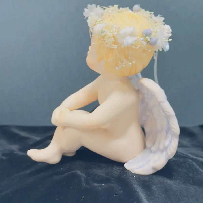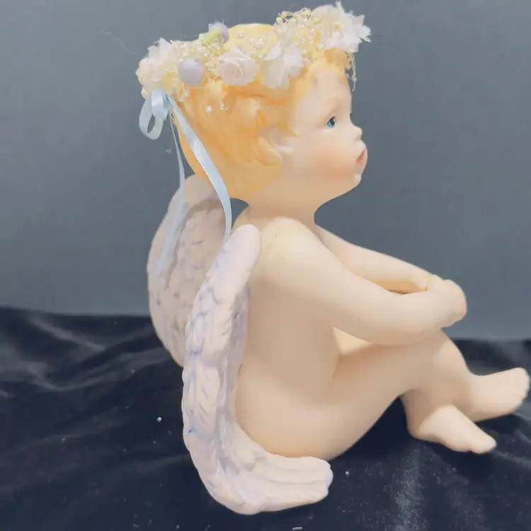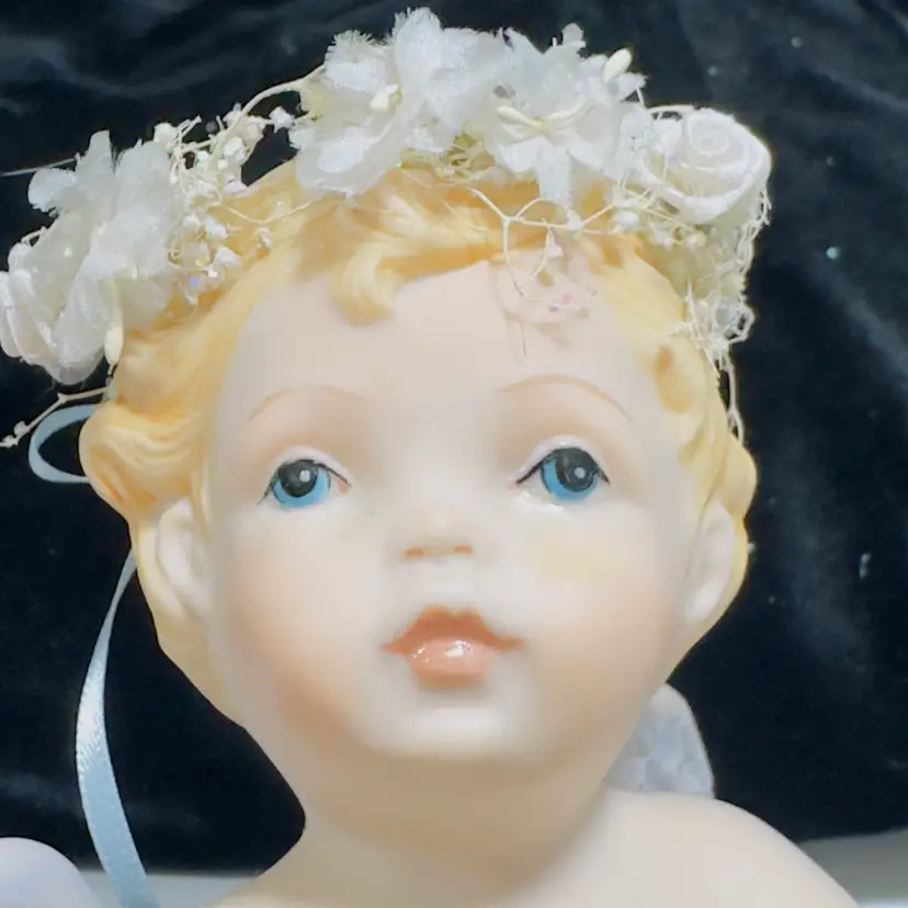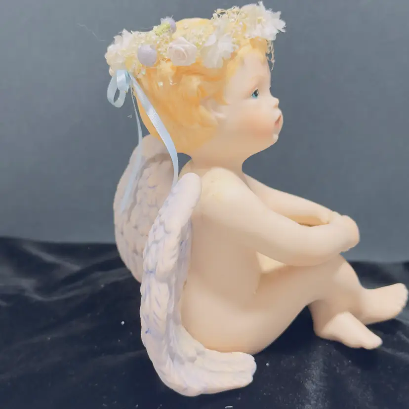 Wings, Floral Crown, Ribbon, Blue eyes, Signed Bonnie L. Cummings, 15oz, 5x5x5, no chips or cracks