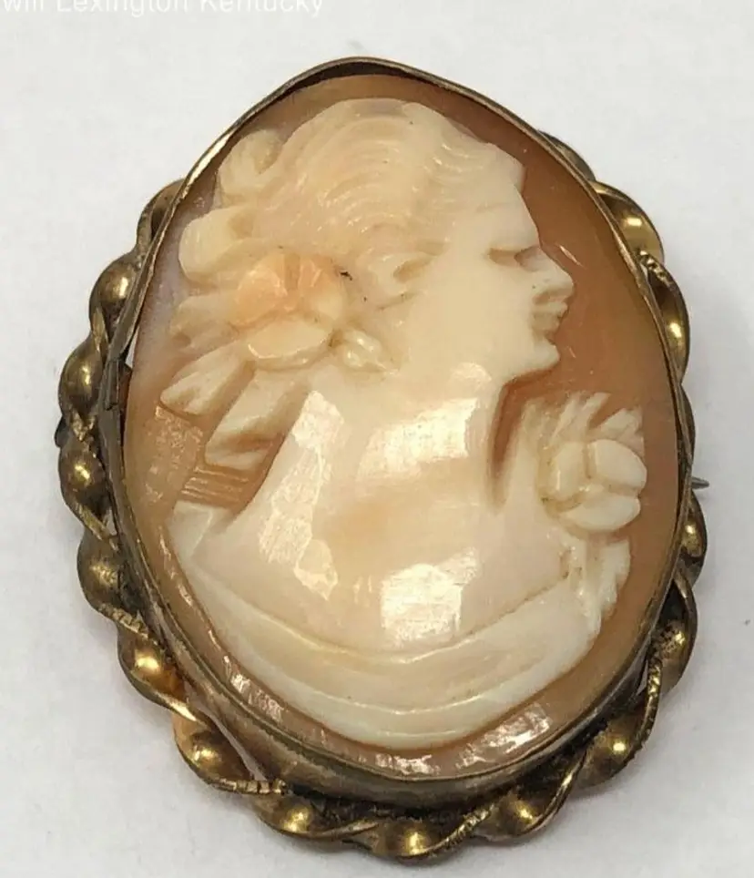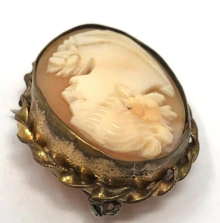 12Kt GF Carved Shell Cameo Pendant & Brooch Vintage 1930s Victorian Pin