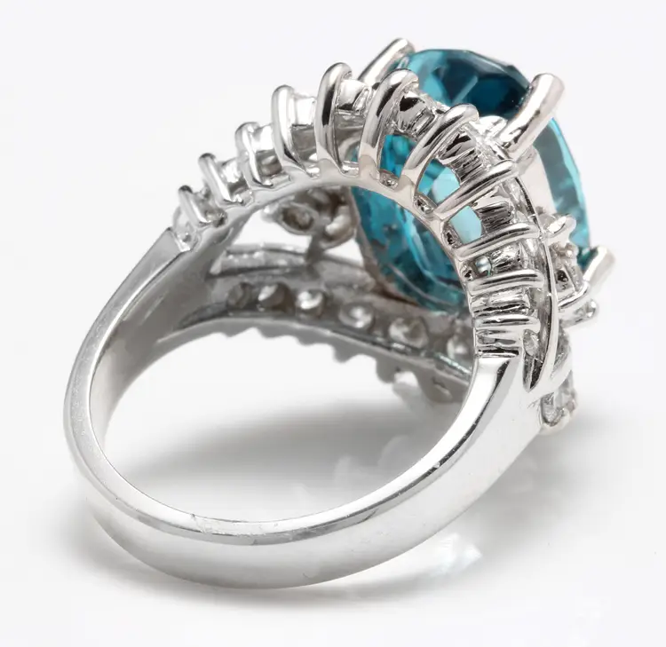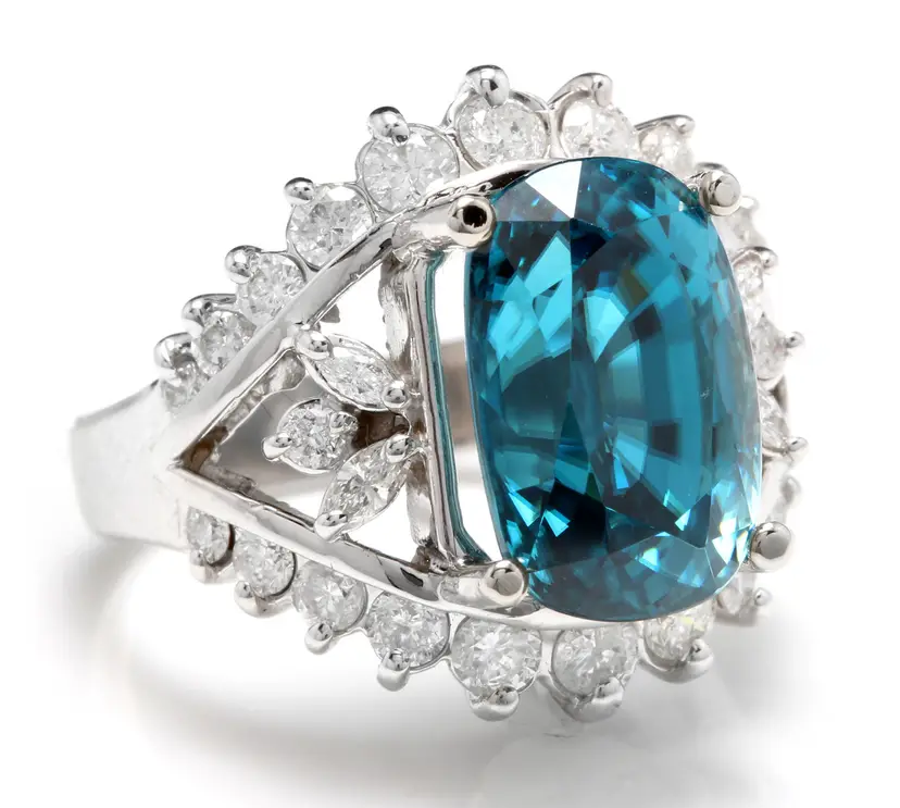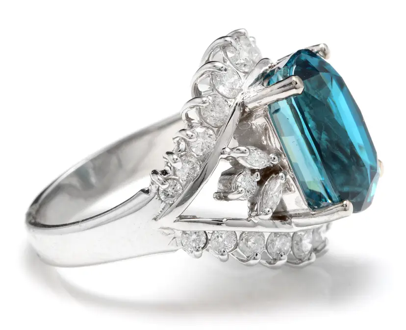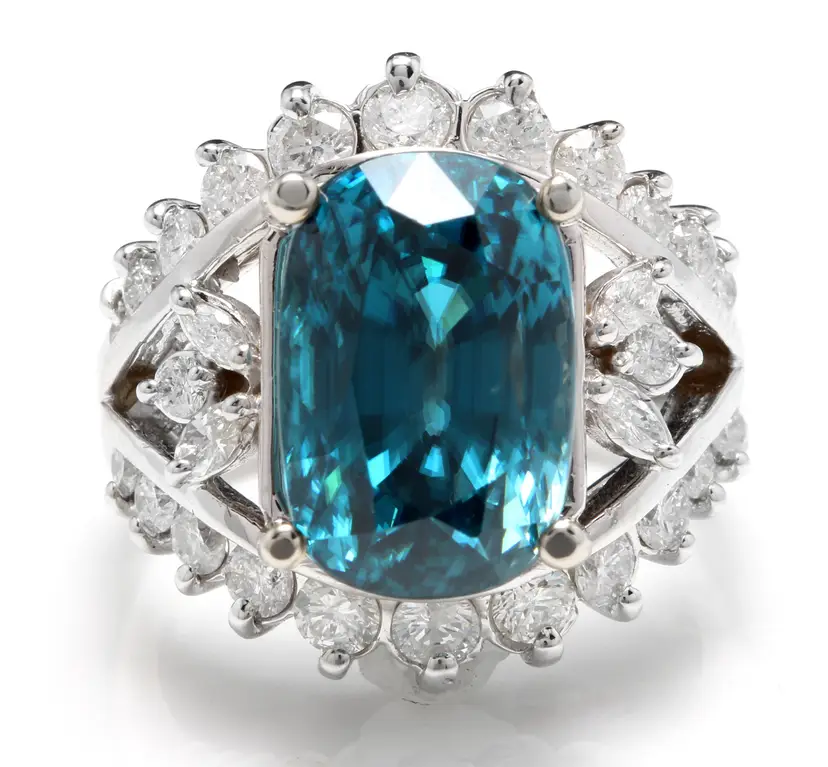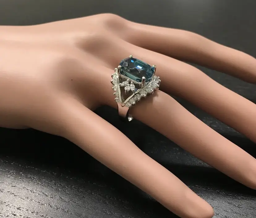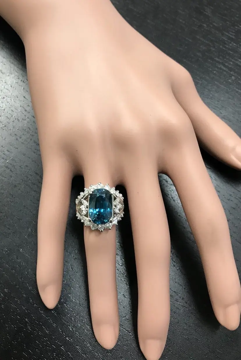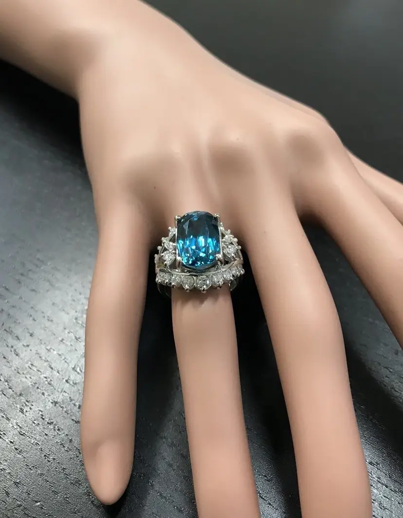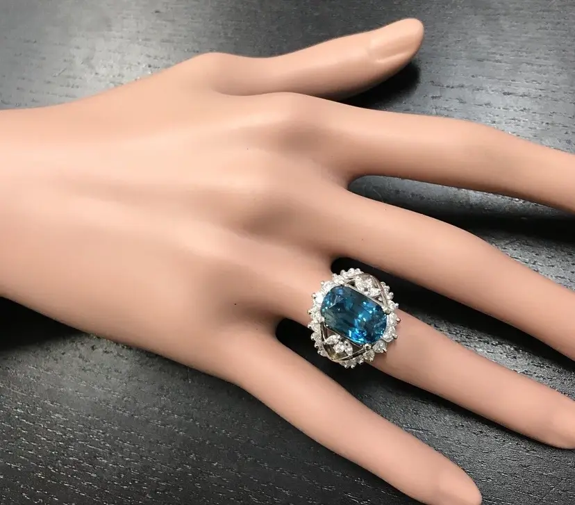 Total Carat Weight: 13.50 Country/Region of Manufacture: United States Main Stone Color: Blue Main Stone Treatment: Heating Metal Purity: 14k solid gold Main Stone: Zircon Sizable: Yes Main Stone Creation: Treated Metal: White Gold Ring Size: 7 Total Carat Weight (TCW): 13.50 Main Stone Shape: Cushion Brand: Unbranded Type: Ring