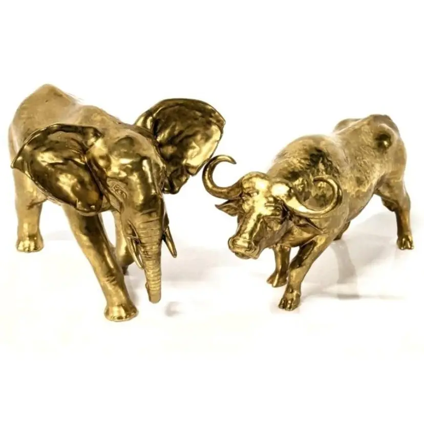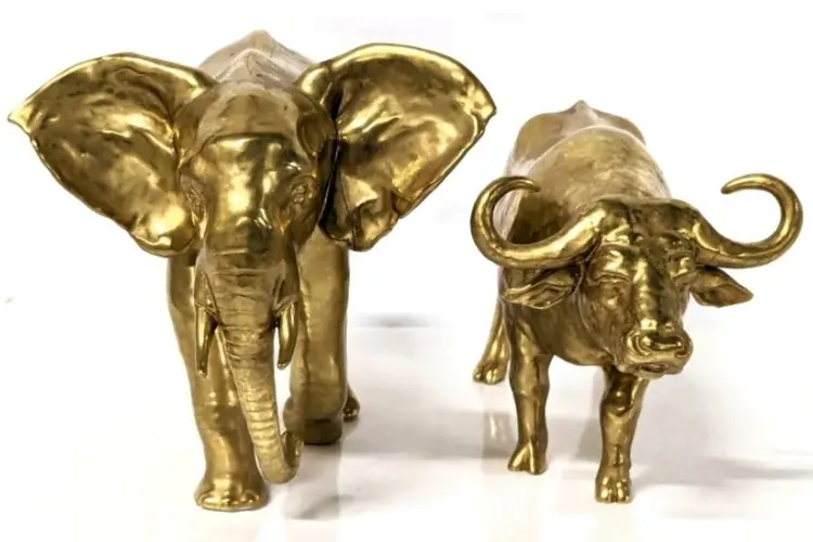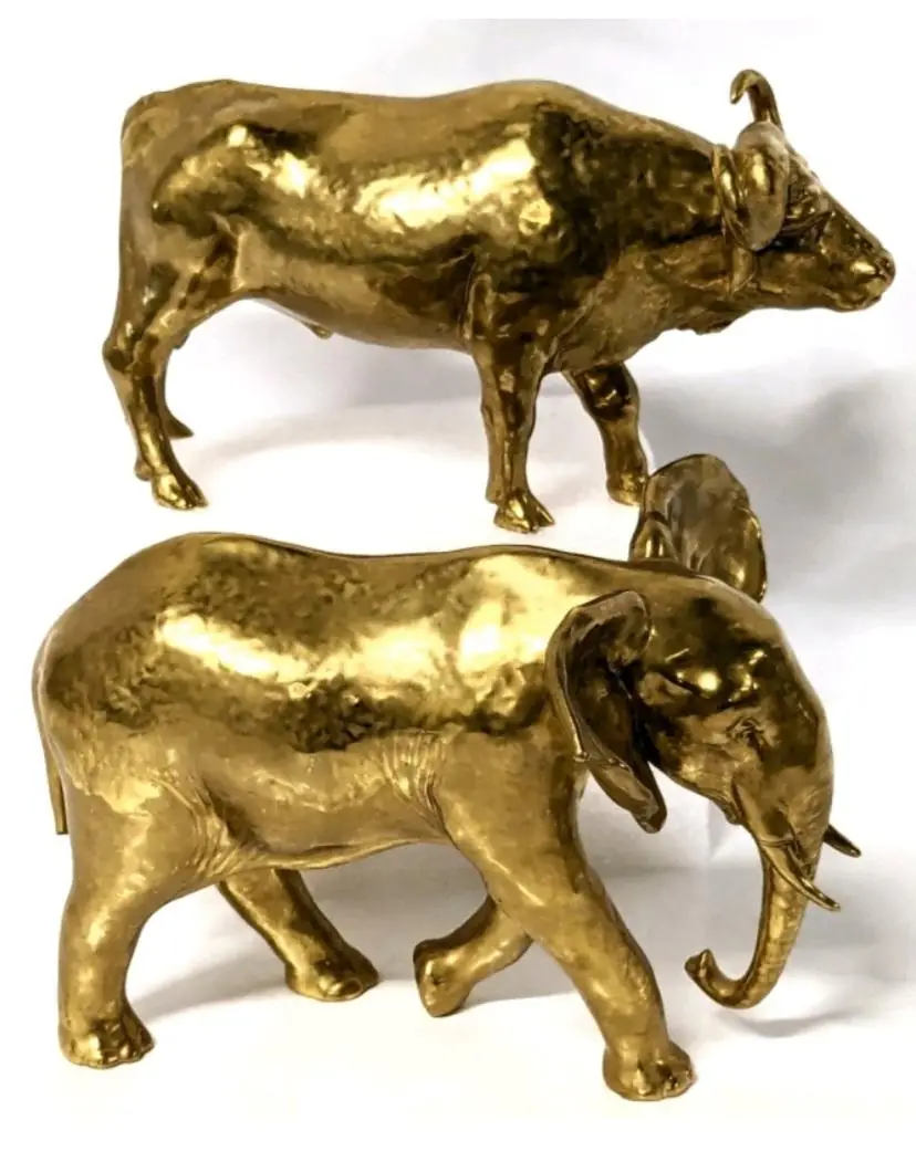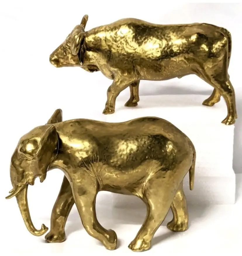 4.5 and 5.5 inches tall Elephant-one ear repaired/glued Buffalo-paint chip back of ear