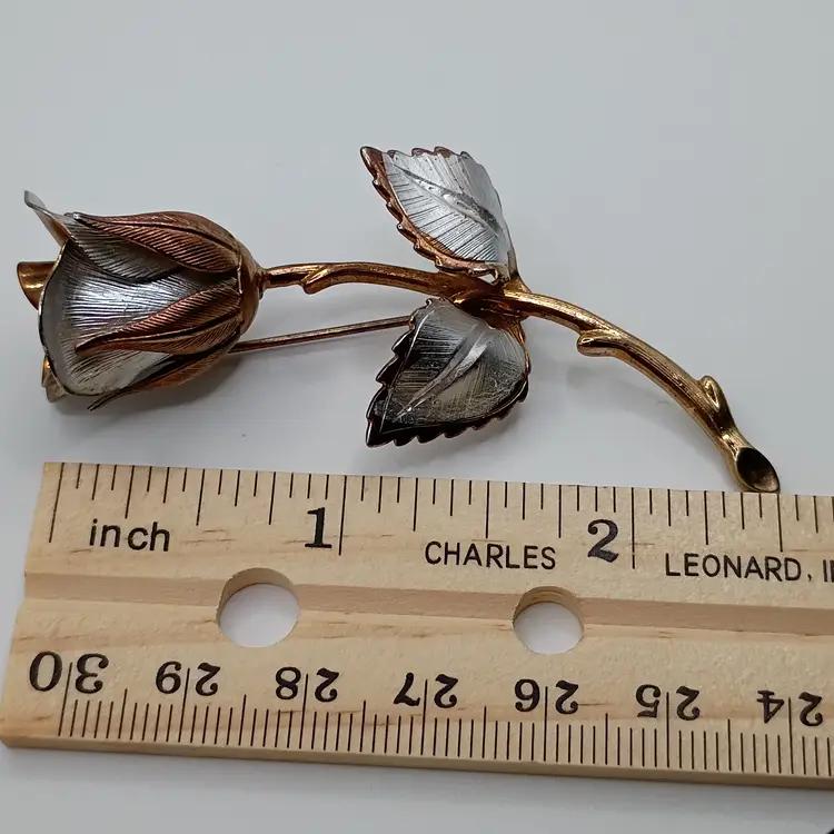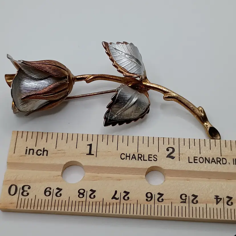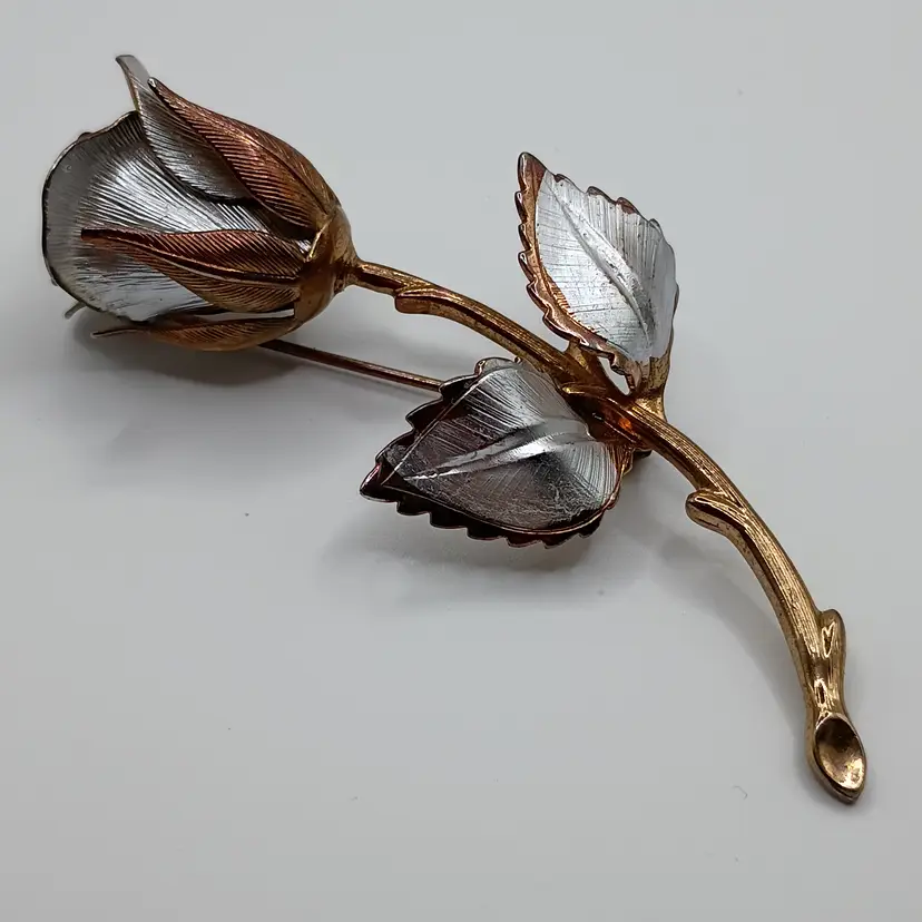 Giovanni Rose Brooch Pin – Gold & Silver Tone Description: