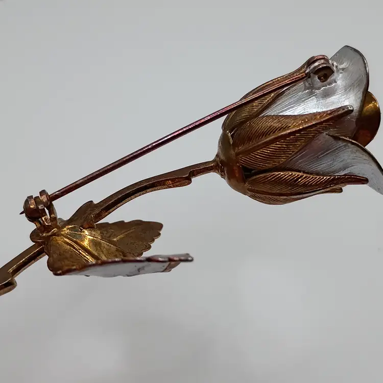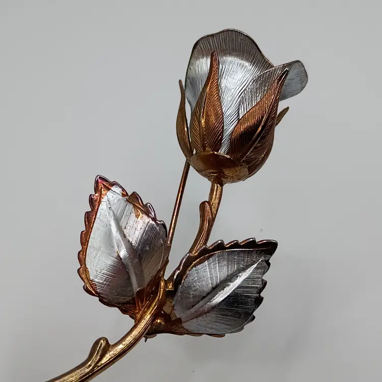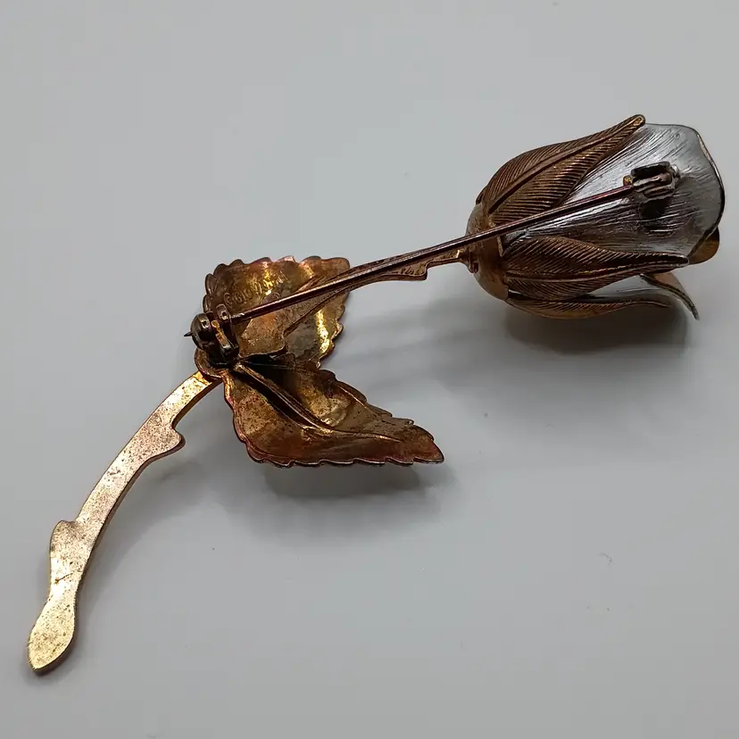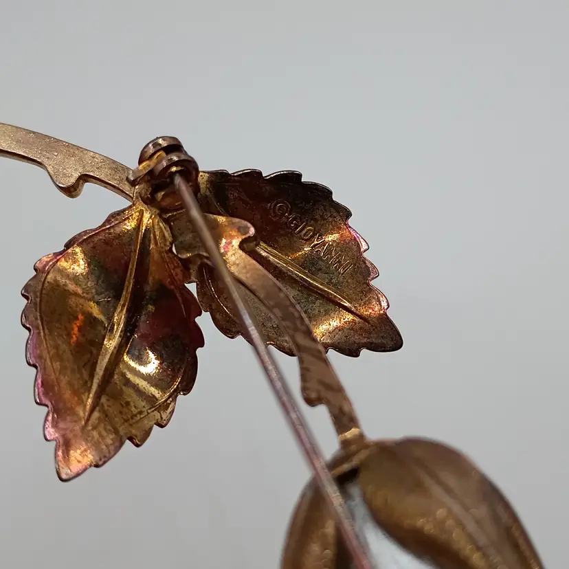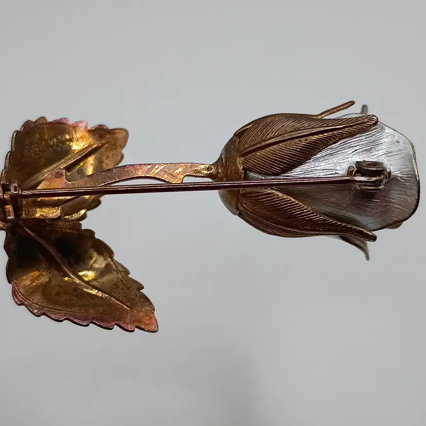 This listing is for one vintage Giovanni rose brooch pin. Giovanni is known for its elegant mid-century floral jewelry, and these rose designs feature finely detailed petals, leaves, and stems. Signed “Giovanni” on the back.