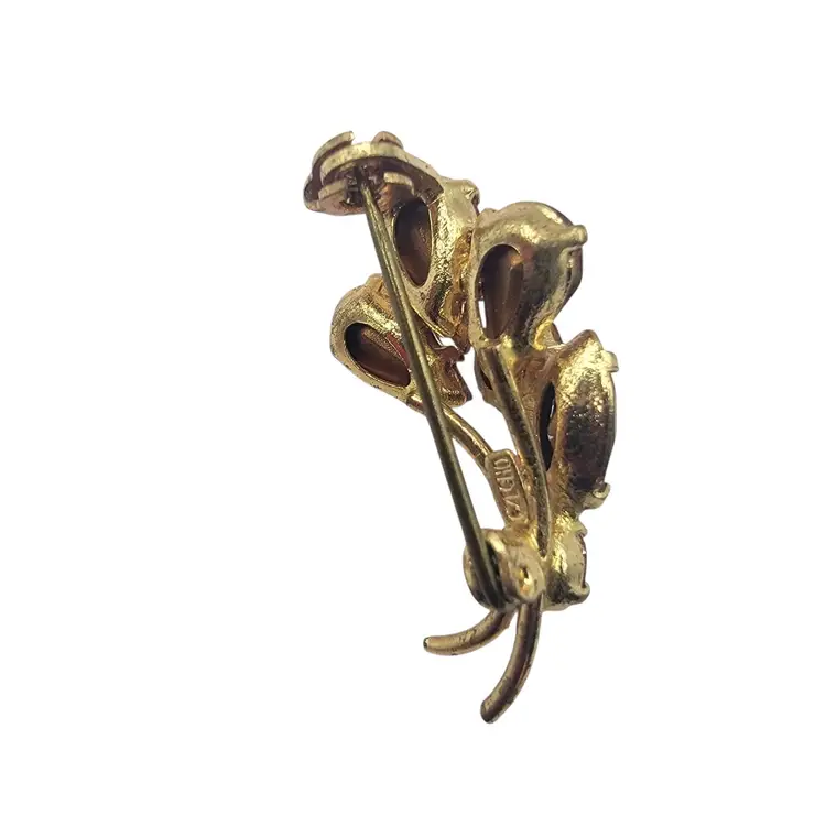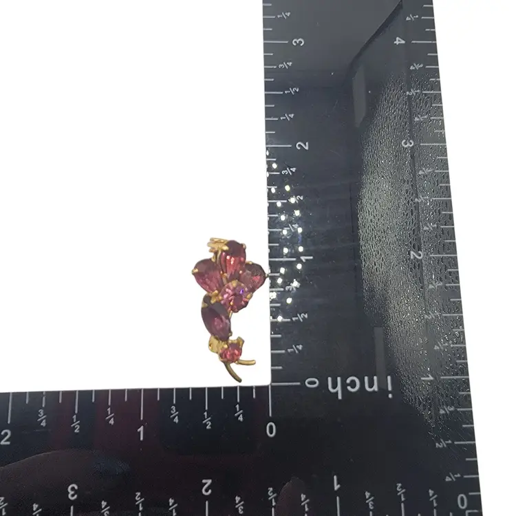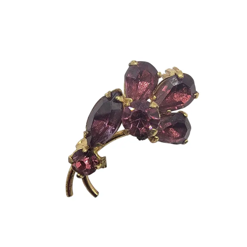 In the heart of Bohemia, a delicate brooch was crafted, capturing the essence of a blooming flower. Adorned with resplendent pink rhinestones set in gold-tone, this exquisite Czech piece whispers tales of elegance and charm. Perfect for enlivening any ensemble with a touch of vintage allure.