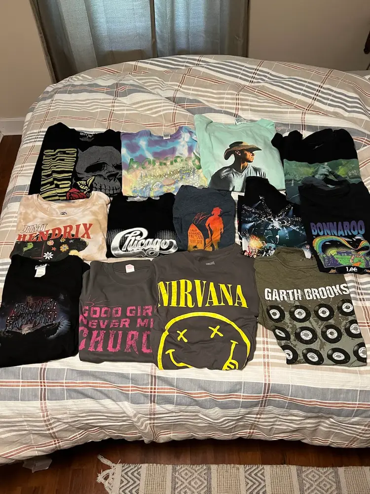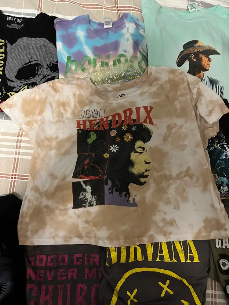 13 Music Shirts most are women’s sizes. A couple are long sleeves and one is a crop top.