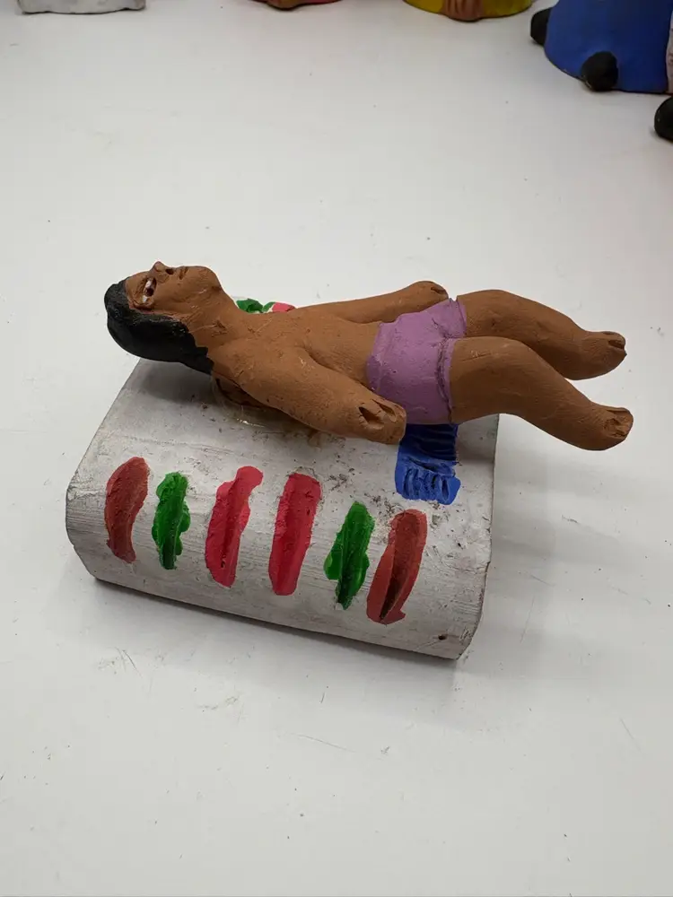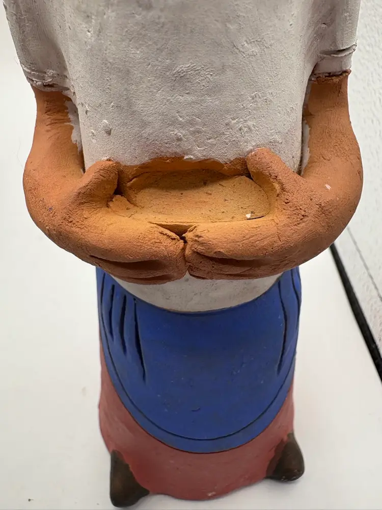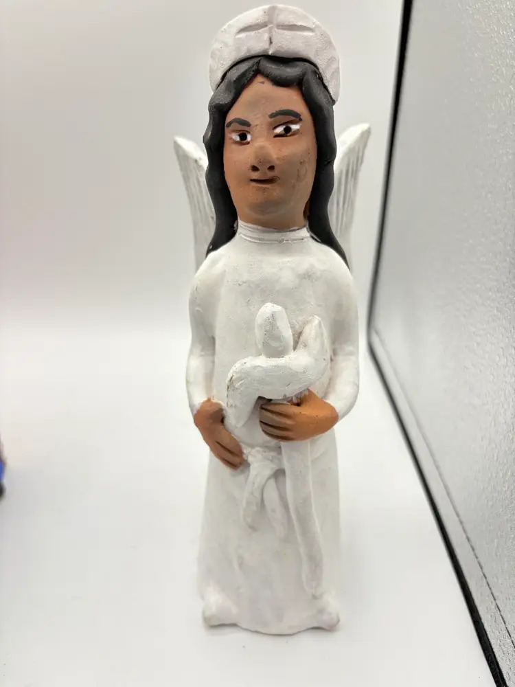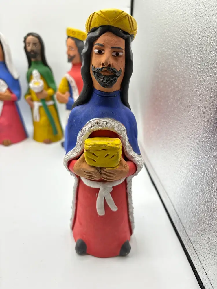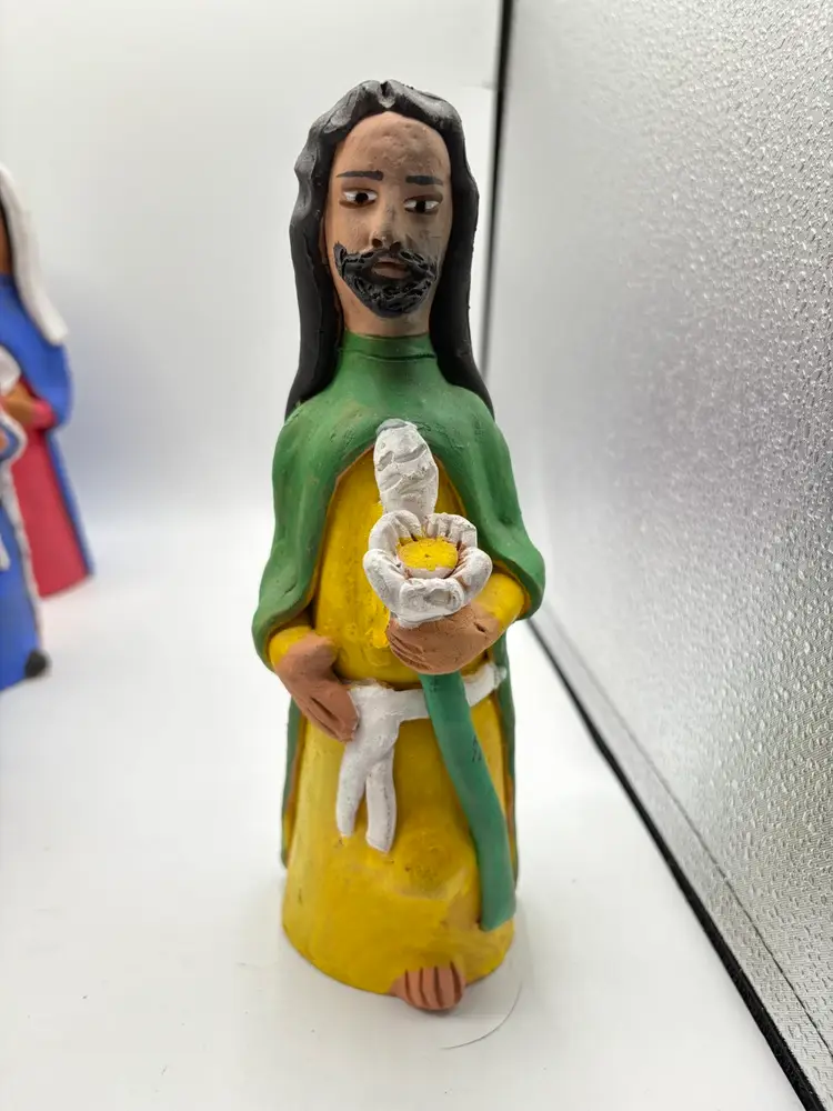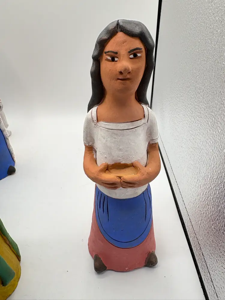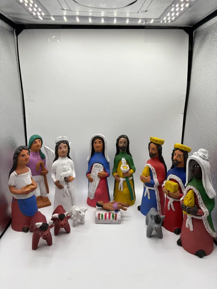 One cow has a chipped horn, one lady is missing what she was holding, baby Jesus needs to be reglued to manger