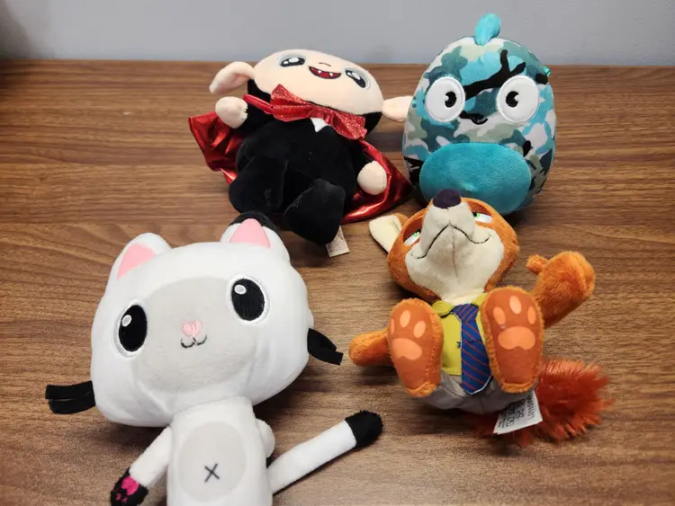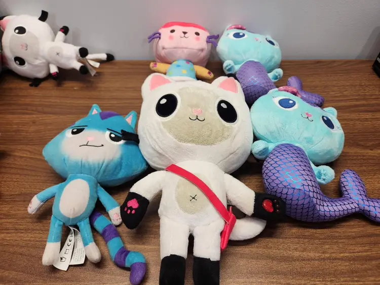 These plush would be rated in "good condition". There aren't any rips or tears and they aren't nasty but they also aren't pristine. This is especially noticed on the Gabby's Dollhouse plush which are a bit more heavily worn and show that, particularly on the white areas. That said they have been cleaned and still overall look pretty good. Includes some unique plush from Disney and vintage thumbsucking monkey.
