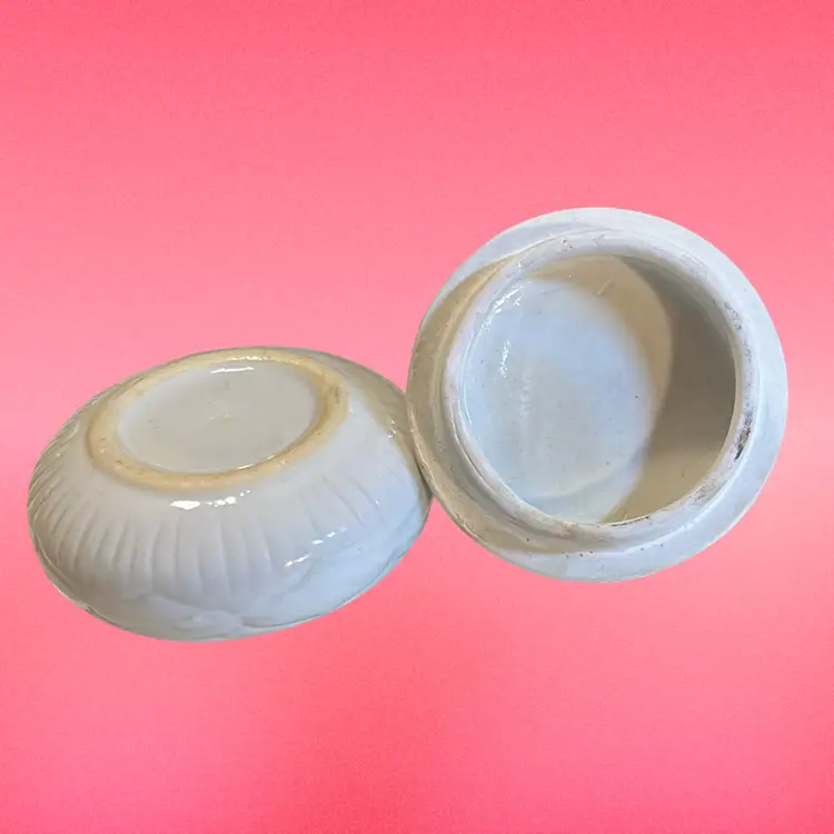 What a little beauty. No chips or cracks. Stands about 2.5 inches tall and has a diameter of about 2.5 inches.