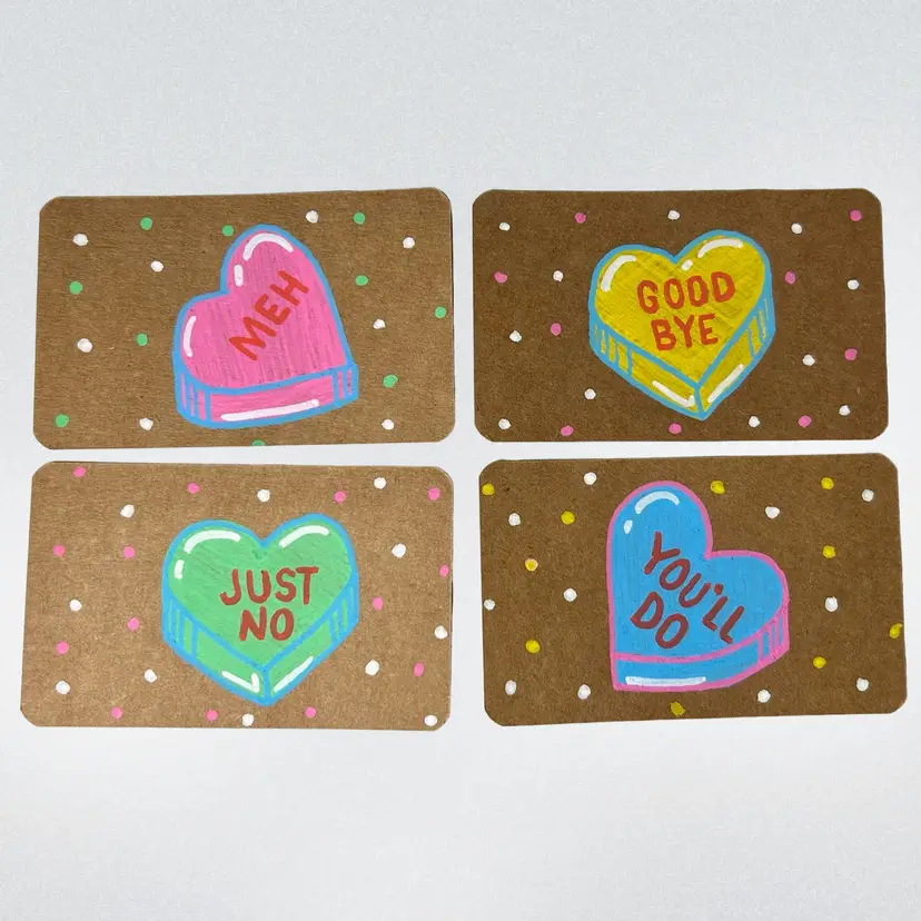 Little pieces of art! They can be used as gift tags or little “thinking-of-you” notes. Backside is blank. Pulled from my brain and brought to life by my hands and Posca acrylic paint pens. These will be shipped without tracking to lower costs for the buyer.