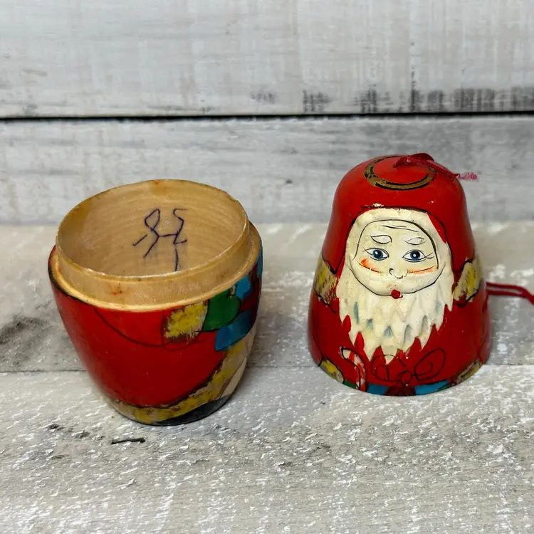 Dimensions: 3" x 1 1/2" This vintage Santa Nesting Doll is a beautiful and unique Christmas ornament that will add a touch of nostalgia to your holiday decor. Crafted from wood, this small ornament features a multicolor design and depicts a classic Santa Claus. One doll perfect for collectors or anyone looking for a special ornament to cherish.