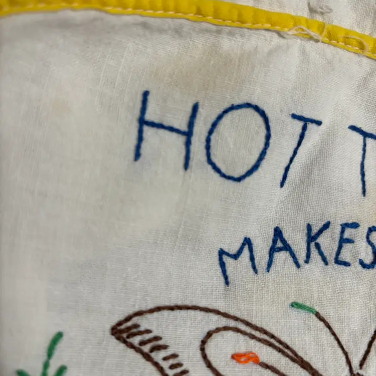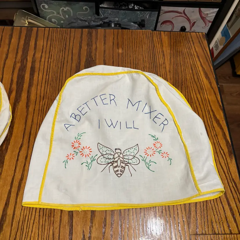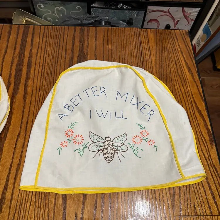 Cute as can be! There a couple stains on both pieces. Toaster cover has a little fraying on a small part of seam.