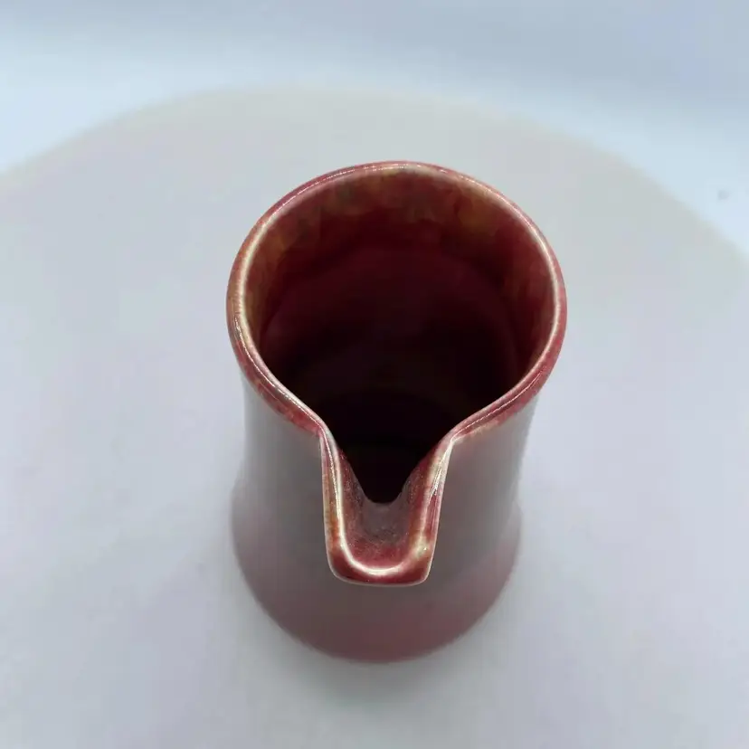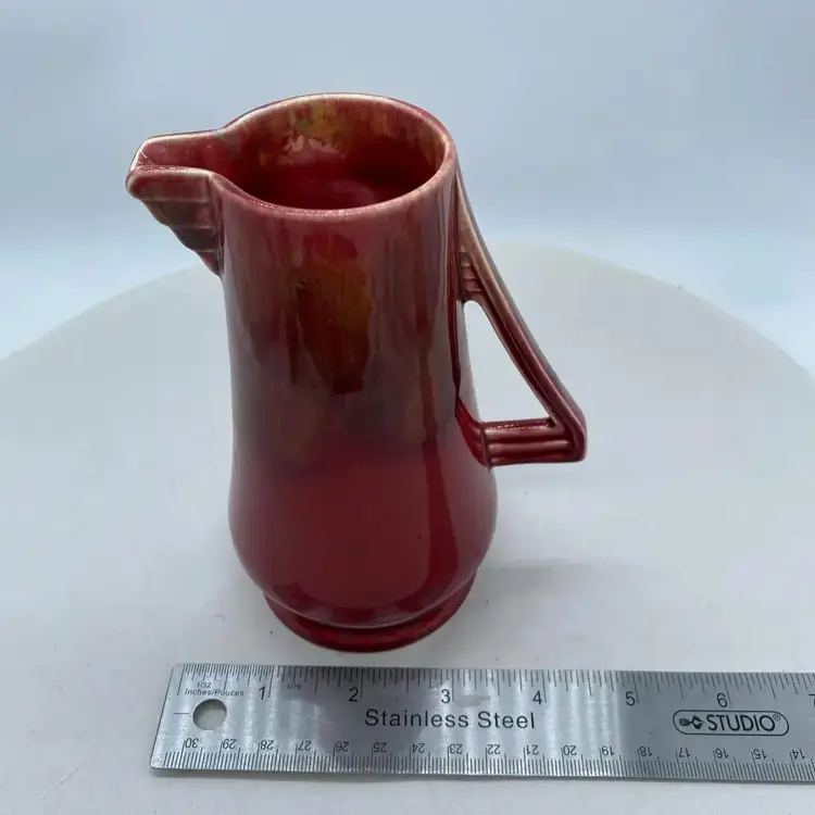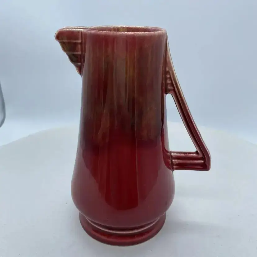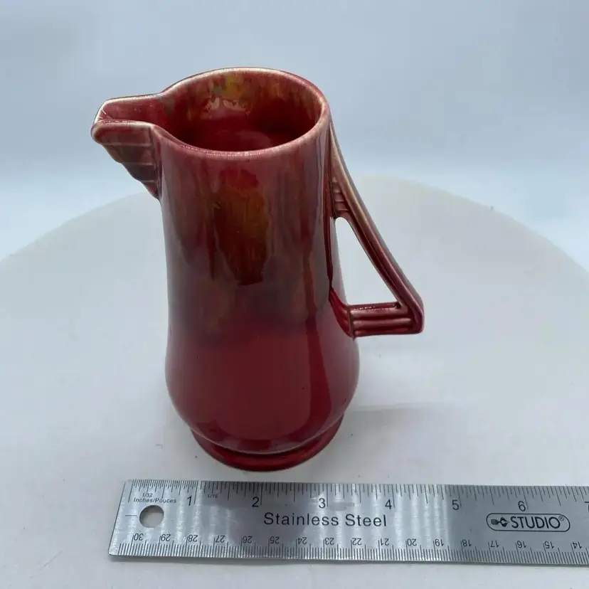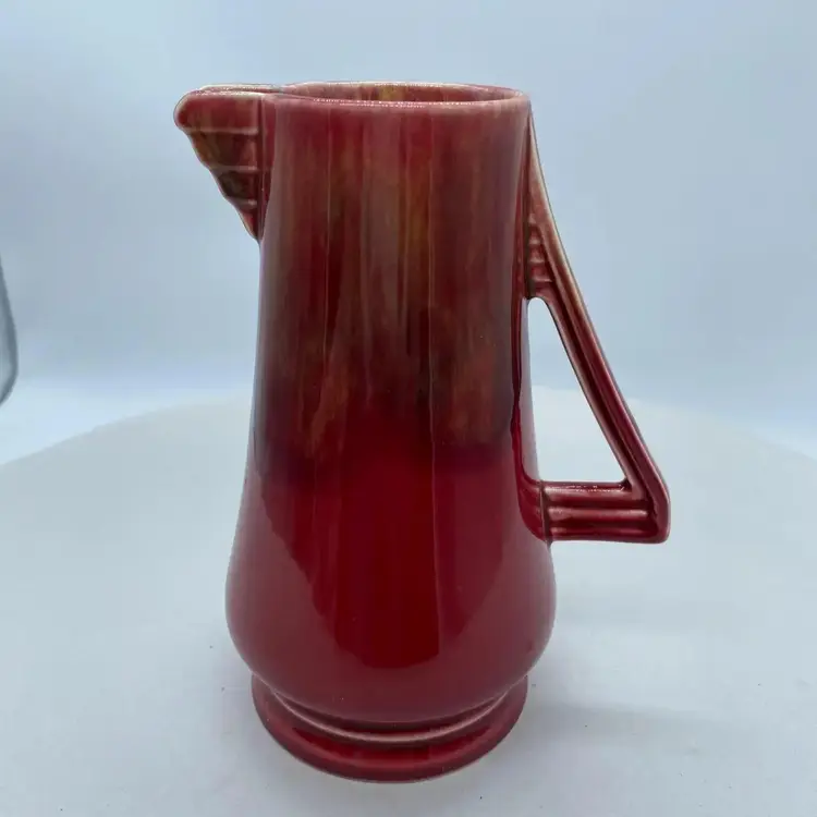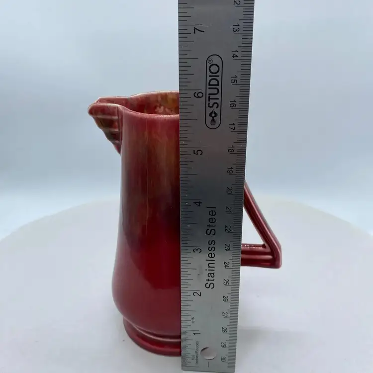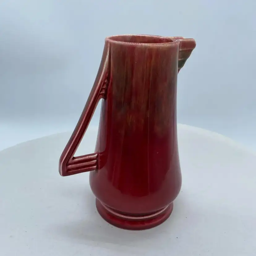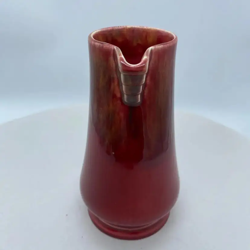 The Ducal Ware Red Ombré Art Deco Jug Pitcher from England is a stunning addition to any collection. This small 5.75-inch ceramic pitcher features a vibrant red ombré design, embodying the stylish Art Deco aesthetic. Made by Crown Ducal, a renowned brand known for quality craftsmanship, this pitcher is a unique piece of dinnerware that will elevate any kitchen or dining setting. Ideal for serving beverages or as a decorative accent, this pitcher showcases the elegance and charm of vintage British ceramic artistry.