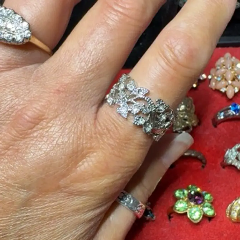 #14 - Buyers Choice Vintage Rings As Shown $3 Starts Rhinestone Floral Band Size 8.5