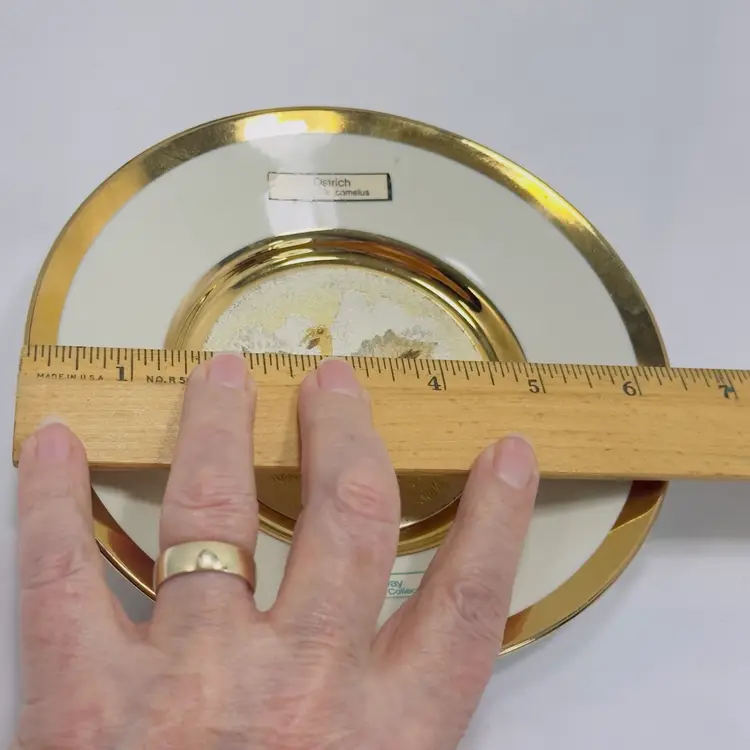 6", 6oz, no chips or cracks, may have some slight marks or scratches on the gold