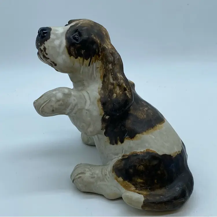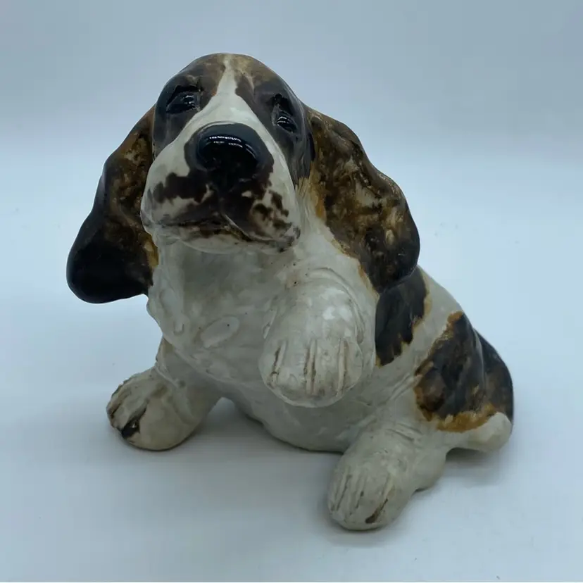 Maria Ericson, a prominent designer for Jie Gantofta, created many popular ceramic animal figures during the mid to late 20th century. Her Basset Hound designs are particularly recognizable for their charming and expressive portrayal of the breed. These figurines were produced in the 1970s and are representative of the era's popular decorative arts.