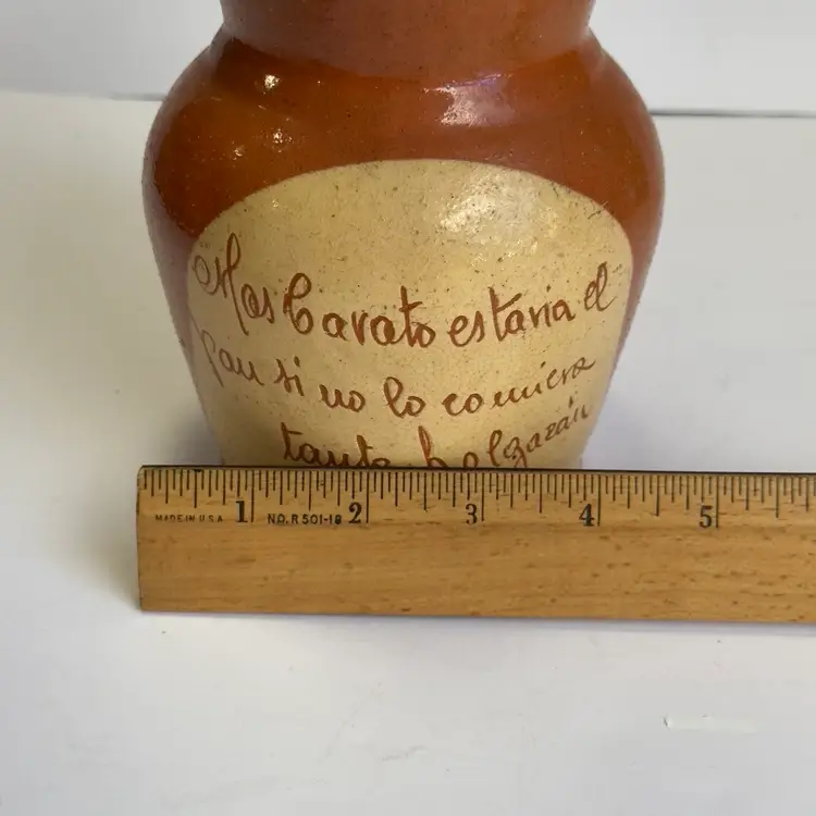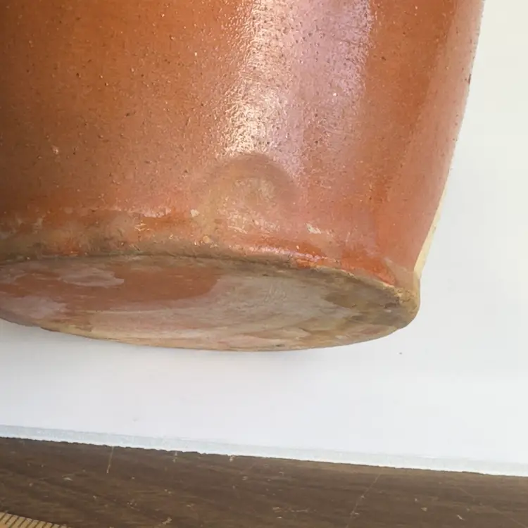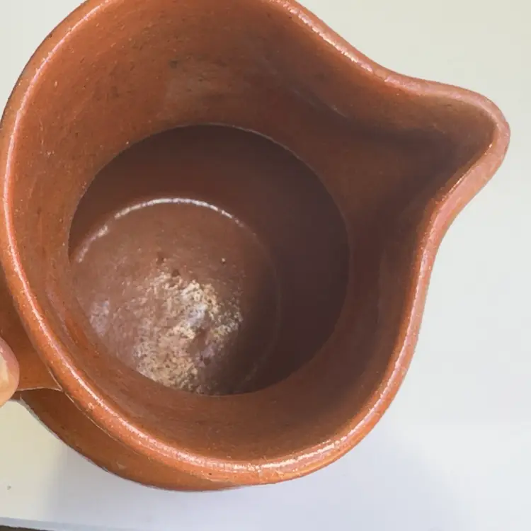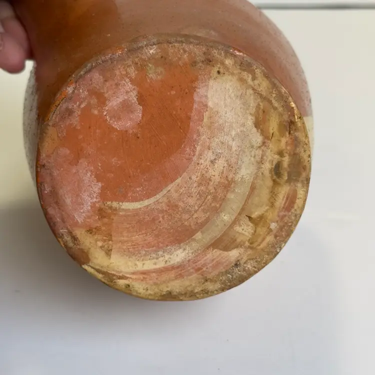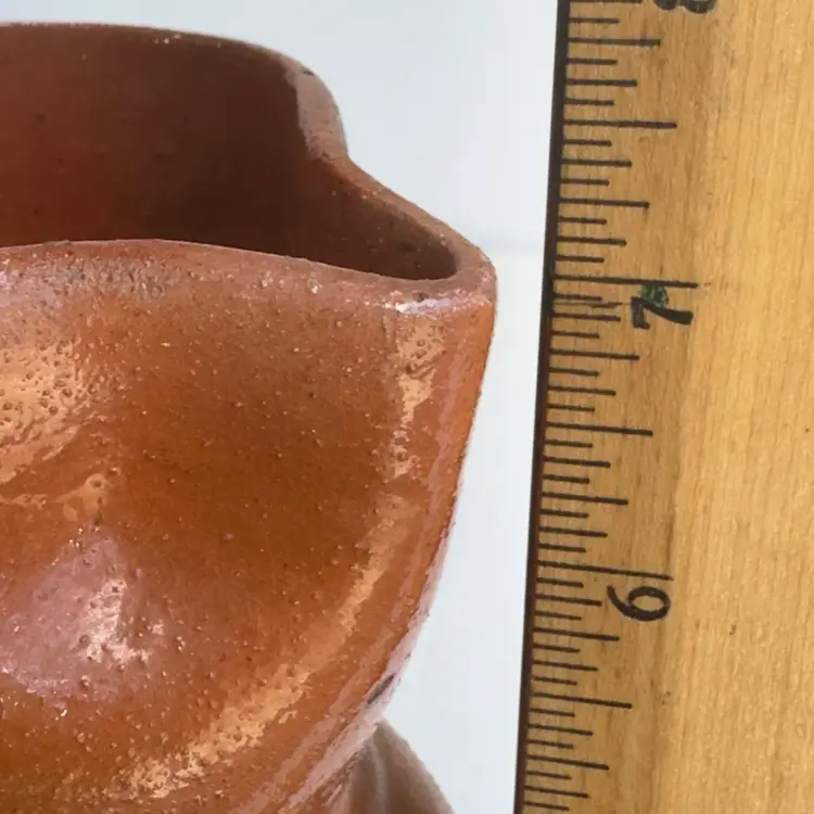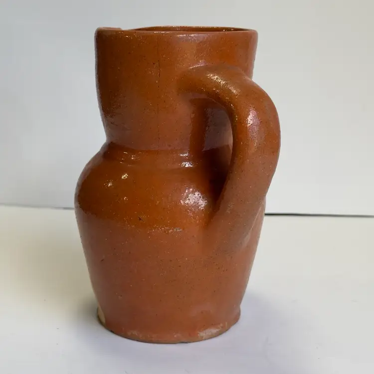 Very traditional pottery jug pitcher there is a fracture/crack at top see pictures some small chips around nd bottom 7x5