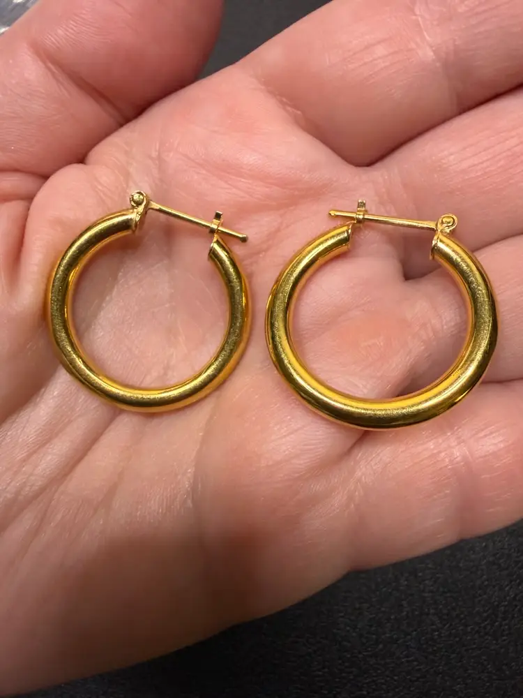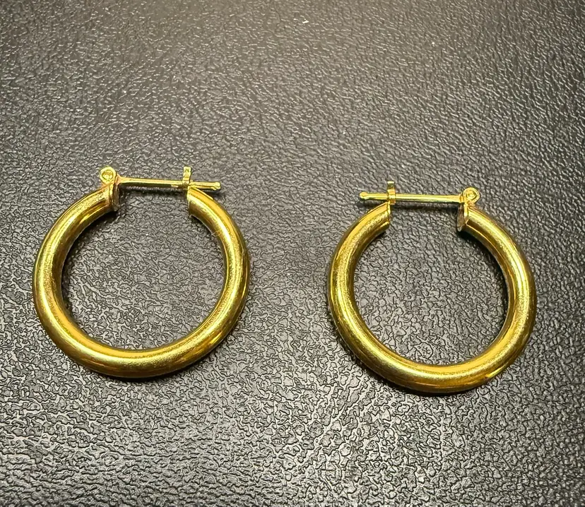These 14k yellow gold tube hoop earrings are a stylish and elegant addition to any jewelry collection. Crafted in Italy with a snap closure, these earrings are signed by the brand and feature a classic hoop design with a sleek yellow gold finish. At 1 inch in diameter and weighing 4.73 grams, these earrings are a perfect choice for those seeking a sophisticated and timeless piece of fine jewelry.