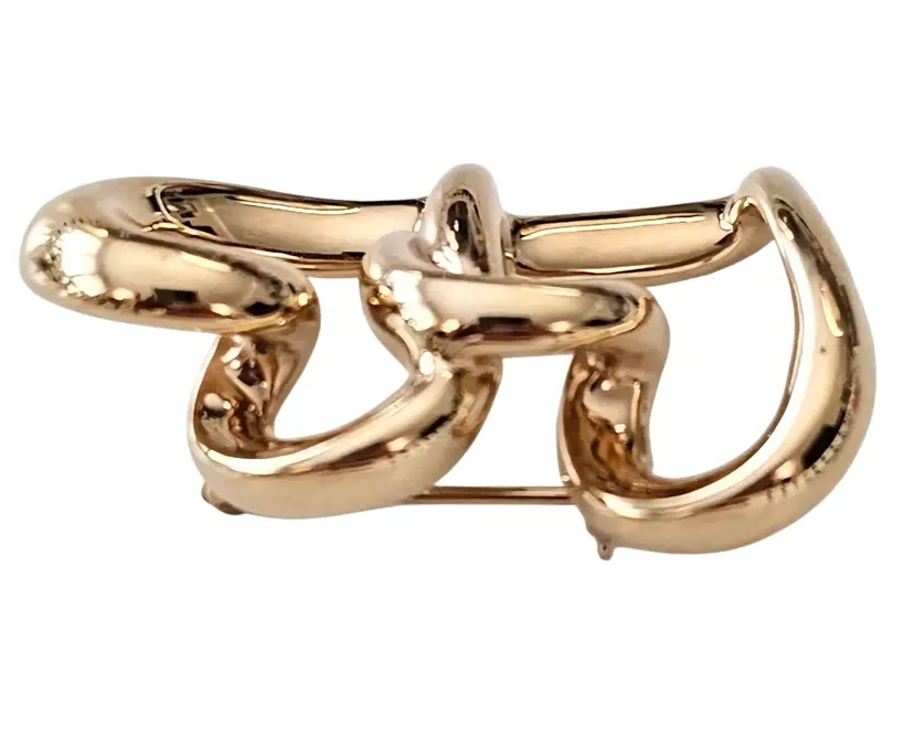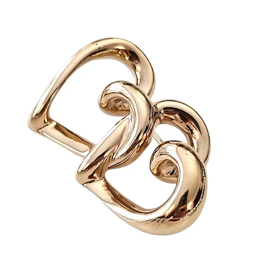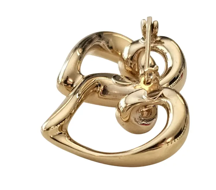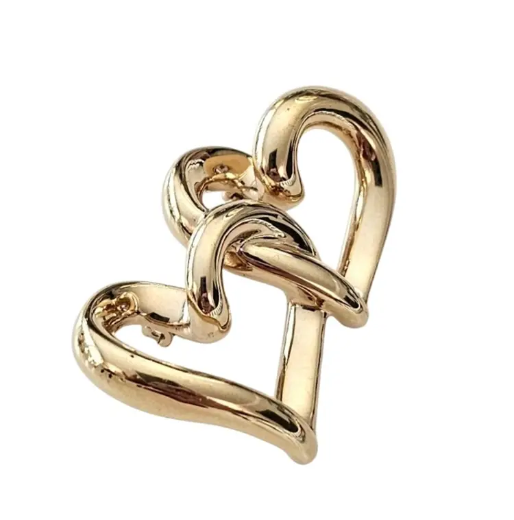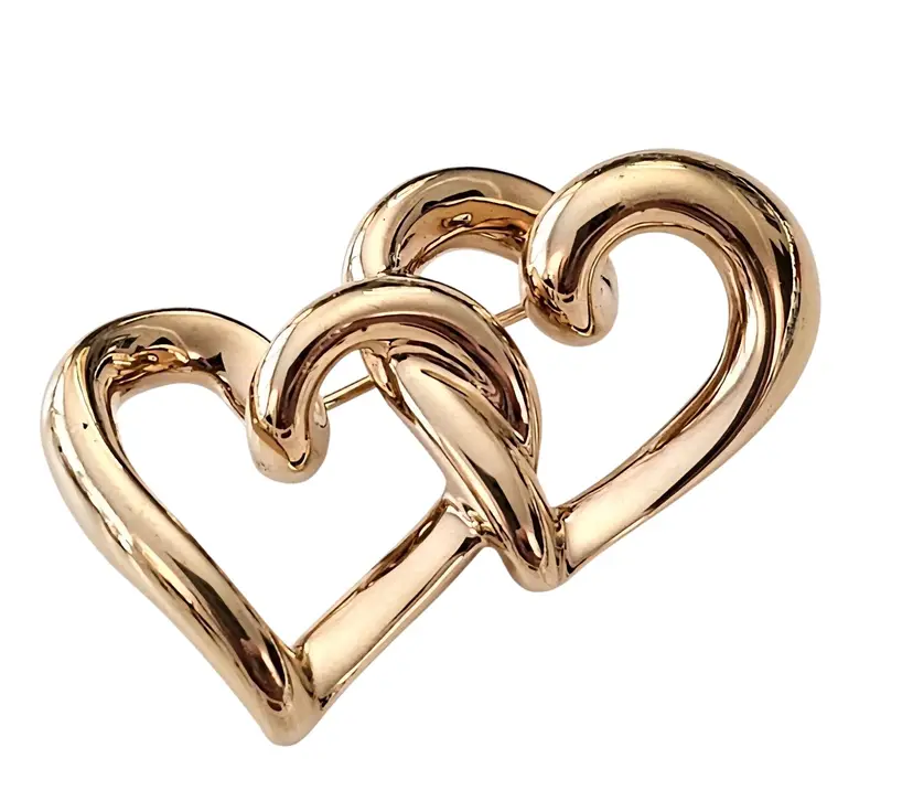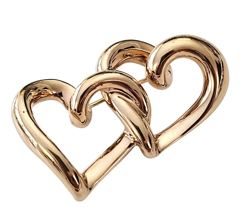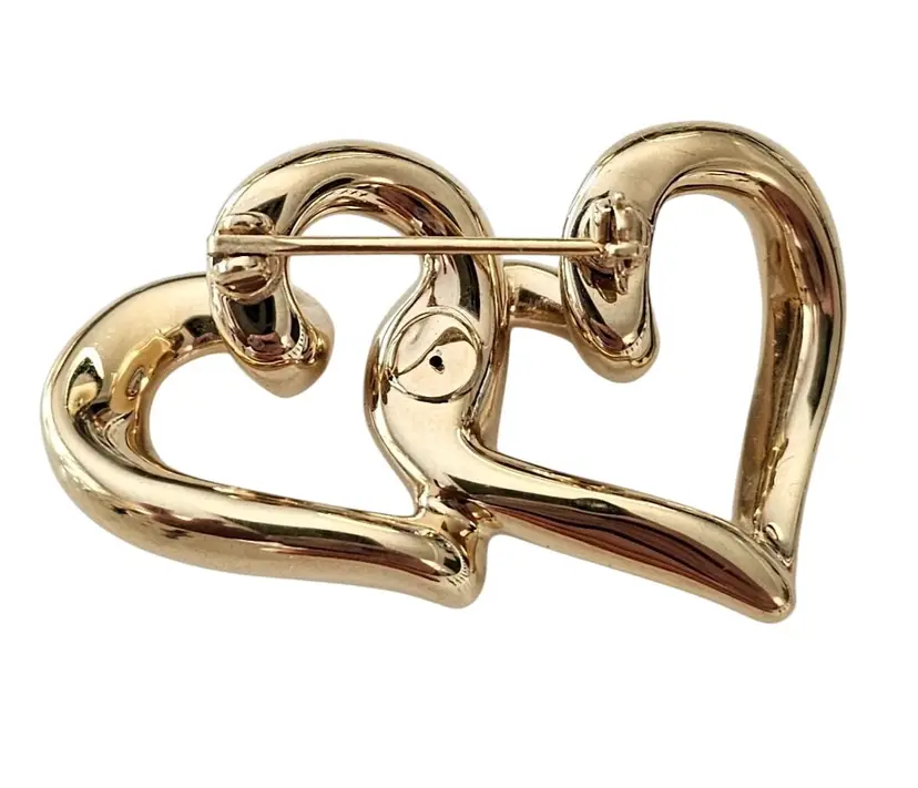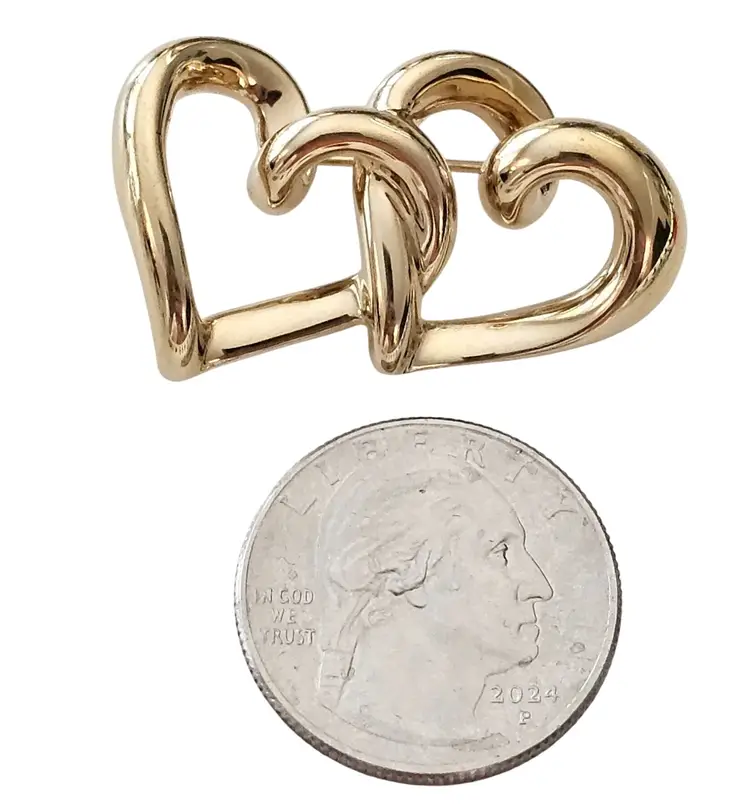 14K Yellow Gold Puffy Hearts Brooch Two Hearts Entwined Pin, C254