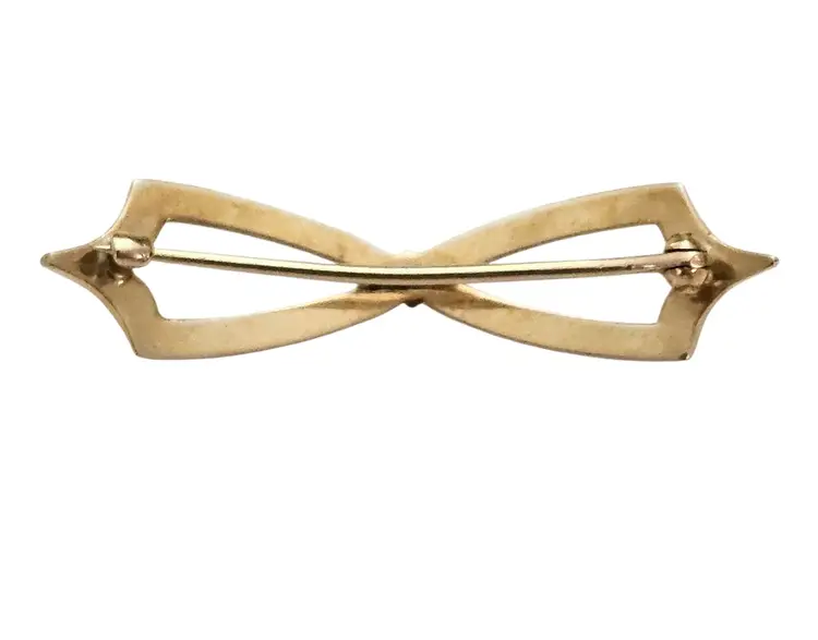 • 14K Yellow Gold Victorian Bow Brooch • Crafted from solid 14K Yellow Gold • Polished finish • Open work bow-shaped pin • Exquisitely enameled blue • Accented with three white lustrous pearls • It measures approximately 1.41 inches in length • It weighs 2.07 grams • The back has a C-clasp closure • This pin is barely marked, but it is tested. Please see the photo included • An antique fastening mechanism where a long pin is secured by hooking the pin underneath a curved, "C" shaped piece of metal • The "C" shaped piece of metal is marked 14K, affirming its gold content • Perfect for all occasions • Fine Jewelry • Good condition • C287