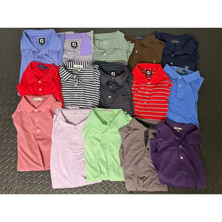 Ralph Lauren Polo Brown Large Vineyard Vines XL men’s Green Stripe Polo Ralph Lauren Polo Golf XL Blue w/ Embroidery Polo FJ Men’s XL Purple Striped Polo FJ Men’s Dark Purple White Stripe XXL Polo Ralph LaurenPolo Men’s Baby Blue XL Polo FJ Men’s Red Stripe Polo Large FJ Black WhiteStripe Men’s Polo XL (Light Fading) Peter Millar Men’s Large Blue Grey Striped Polo w/ Embroidery Ralph Lauren Polo Men’s Medium Solid Red Polo Peter Millar Men’s Maroon Large Polo w/ Embroidery Peter Millar Men’s Pink XXL Polo Peter Millar Men’s Green White Striped Large Polo Lululemon Men’s Polo (no tag) Peter Millar Men’s Polo XXL Purple