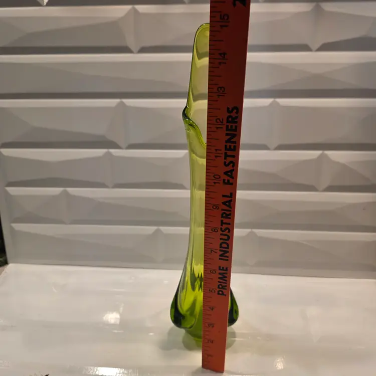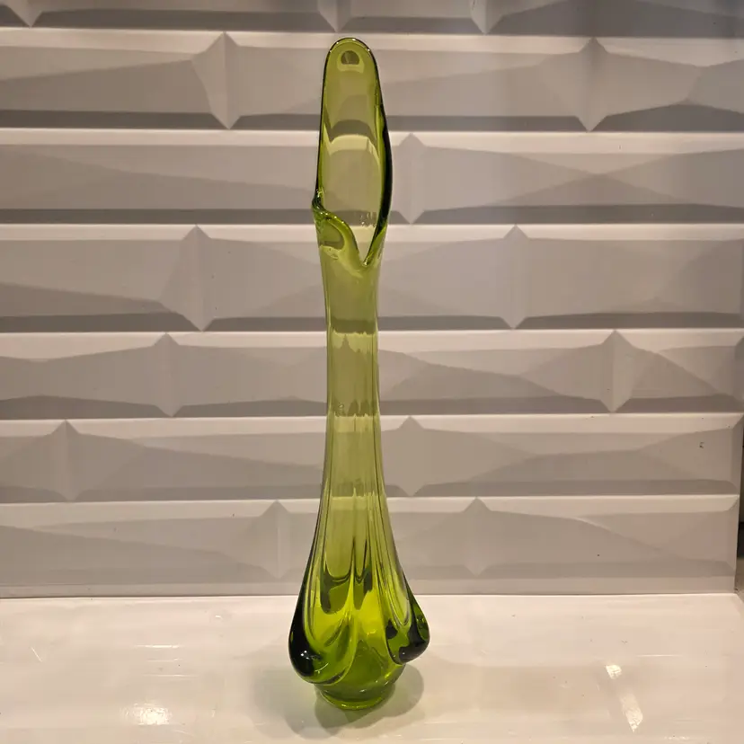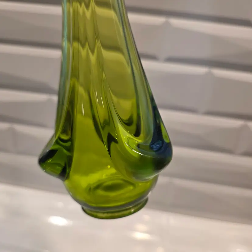 15" Viking Epic Drape green swung glass vase Good condition no chips or cracks Please review photos