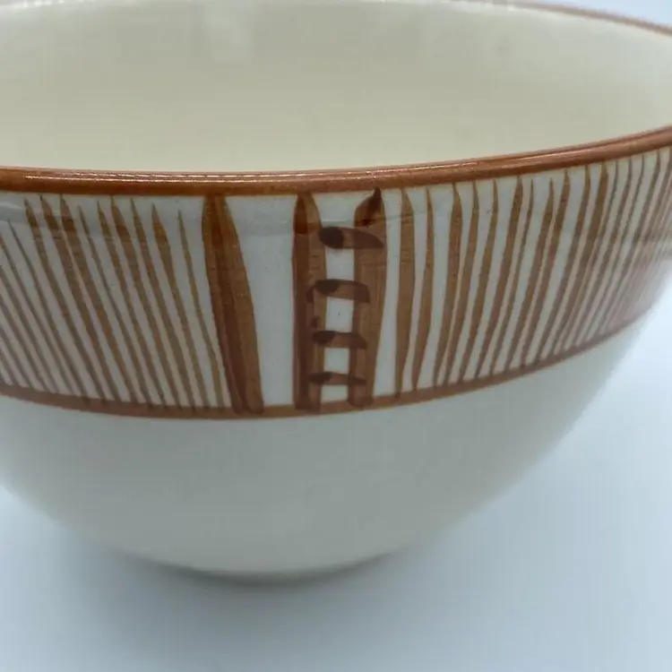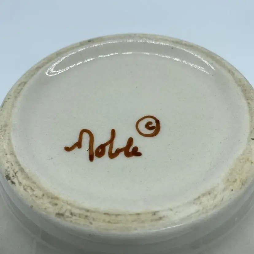 Wynne Noble Pottery Bowl with Ostrich Handpainted Handmade Pottery plate by Famed Potter Wynne Noble of Brookly NY designer of tableware for Momofuku Ko Restaurant. "Each piece of pottery made at our studio is uniquely made by hand with an eye towards form, function, and the warmth of sharing food with friends and family" Bowl and Platter sold separately but will give you a discount if you buy both. Will be shipped separately because of size/weight. Bowl is 8 inches across and 5 inches deep