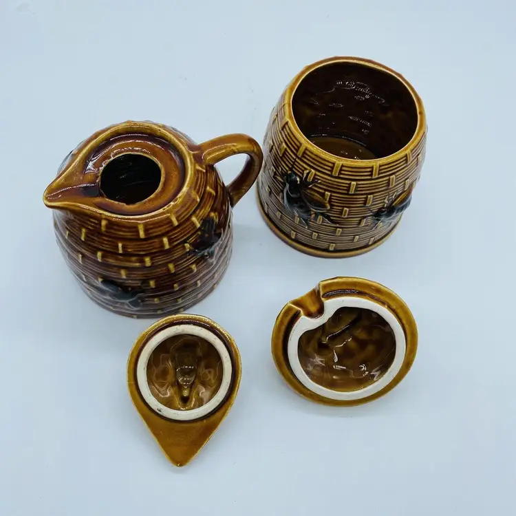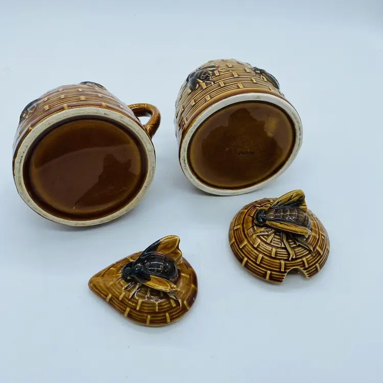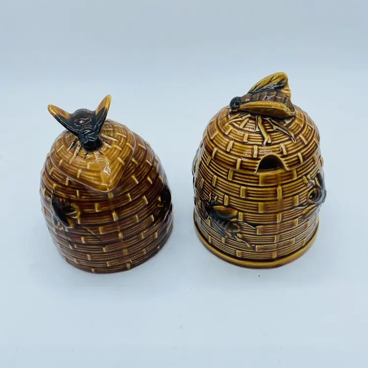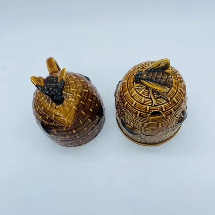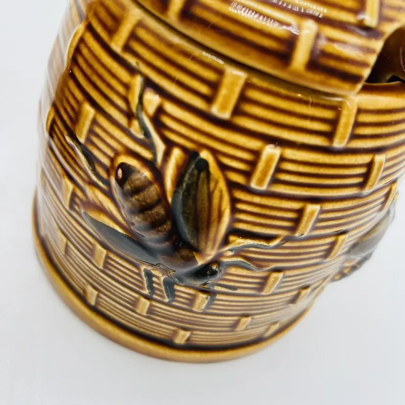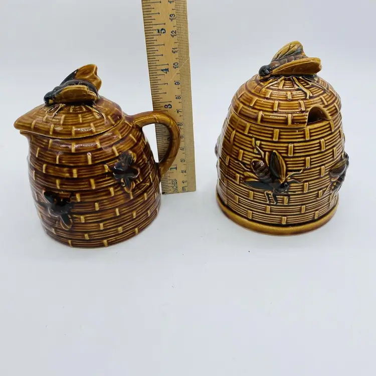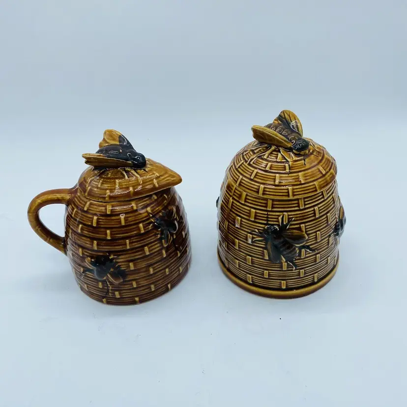 Syrup Jug and Honey Pot Hive Bees Basket Weave.