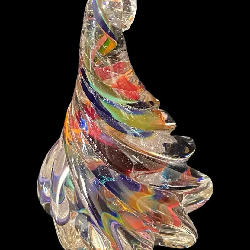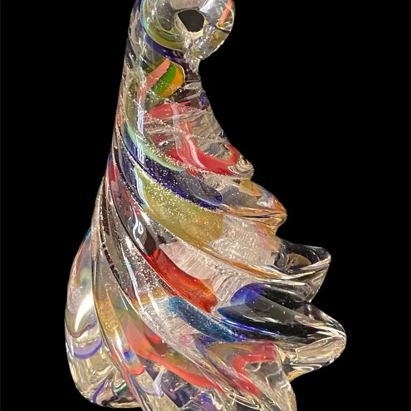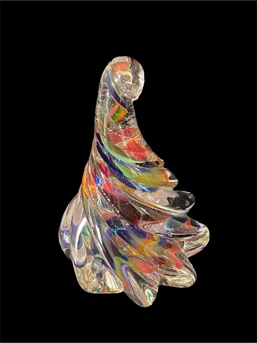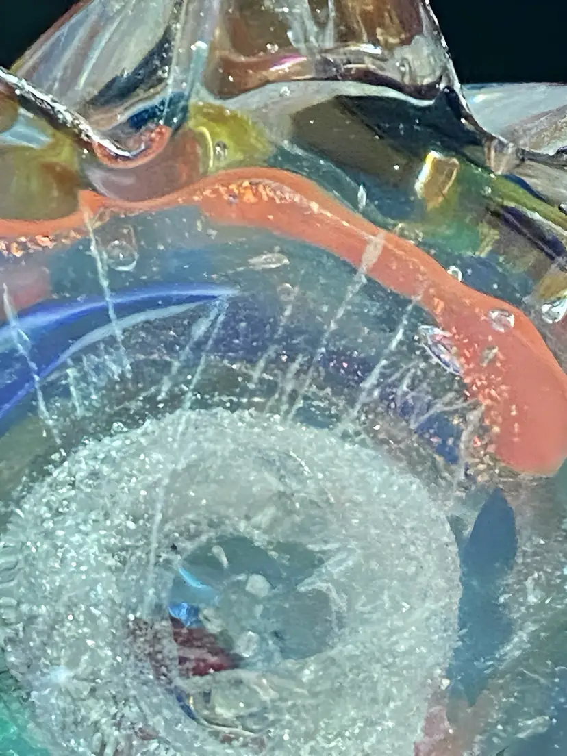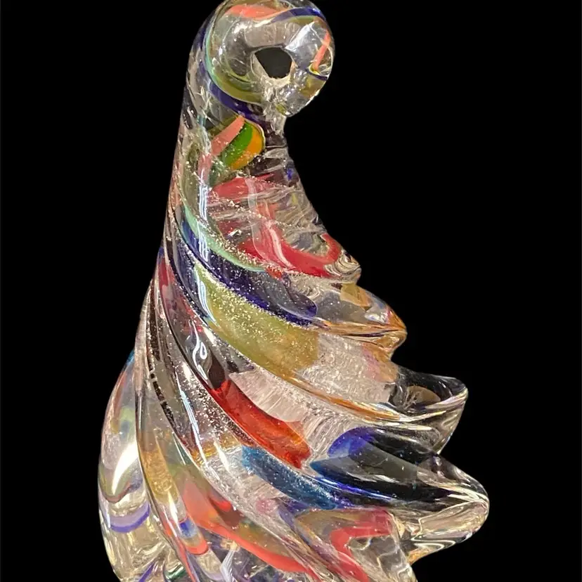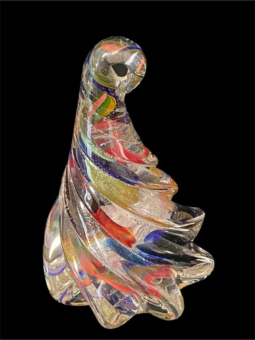 11 inch base 5 1/2 inches tall with no chips or cracks is a beautiful signed art sculpture. David Goldhagen is a well-known glass sculpture with many pieces in museums.