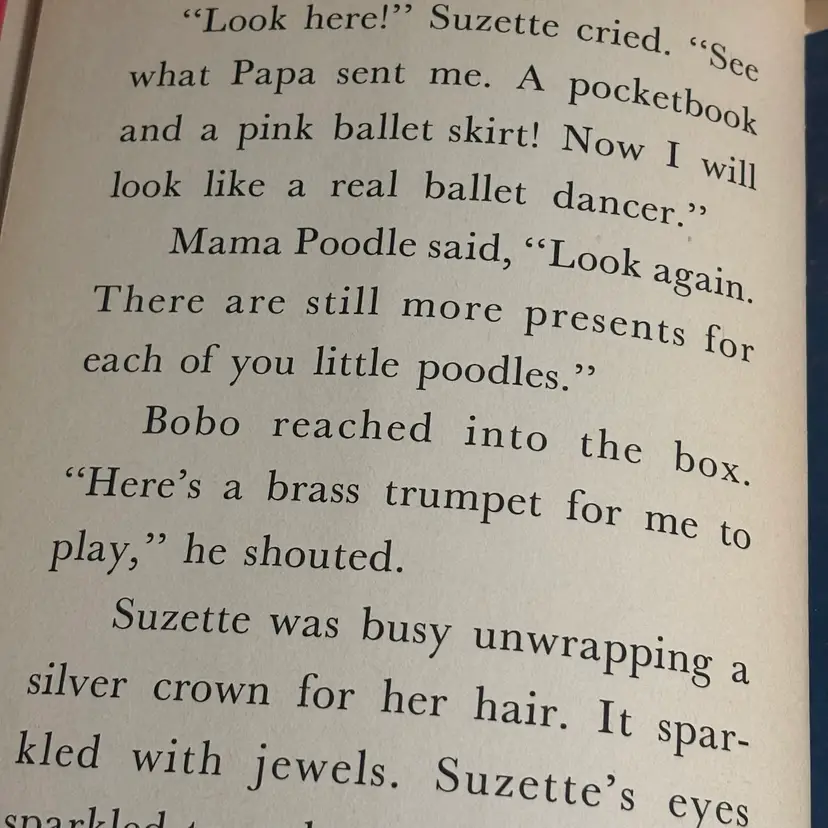 Come join in with the poodle family as Suzette plays dress up and wants to be a ballerina. Very rare and in pretty darn good shape with just a little wear at corners. No tips tears or writing. Real pictures were used and color is fabulous.
