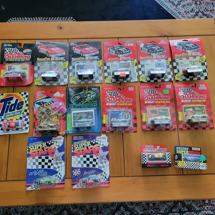 16 Vintage Sealed Nascar Die Cast Stock Car Racing Champions Earnhardt Kulwicki Irvan All sealed - A bit dusty from storage. All from early to mid 1990s They appear to be selling for approximately $7 each some a bit more. Part of my late husbands collection.