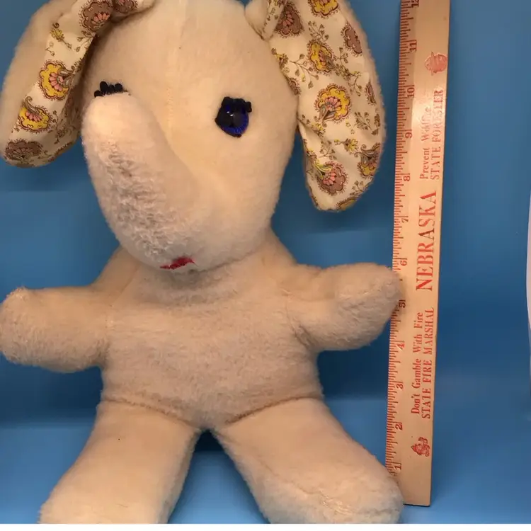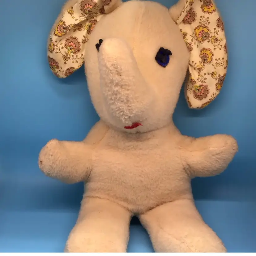 16” Vtg Pale Yellow Elephant Plush Stuffed Animal